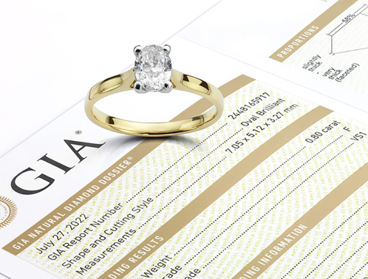 Many diamonds, including all Valam Design diamonds, are certified by independent institutions such as the Gemological Institute of America (GIA), the International Gemological Institute (IGI), HRD Antwerp, and the Gem Certification & Assurance Lab (GCAL). To grade a diamond, trained professionals use specialized equipment to assess cut, color, clarity, and carat. They may also plot a diagram of its clarity characteristics and graphic representation of its proportions. Certifications may also include notes on symmetry, polish, fluorescence, shape, or measurements.