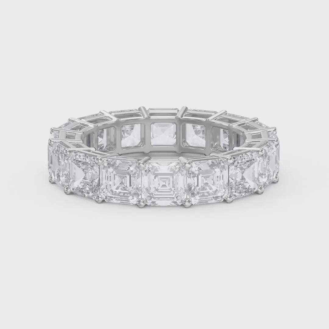 Elevate your jewelry collection with this stunning Ascher Cut Diamond Eternity Band, expertly crafted in 925 Sterling Silver. Featuring a continuous row of sparkling Ascher-cut stones set all around the band, this ring delivers unmatched brilliance with a refined, geometric appeal.