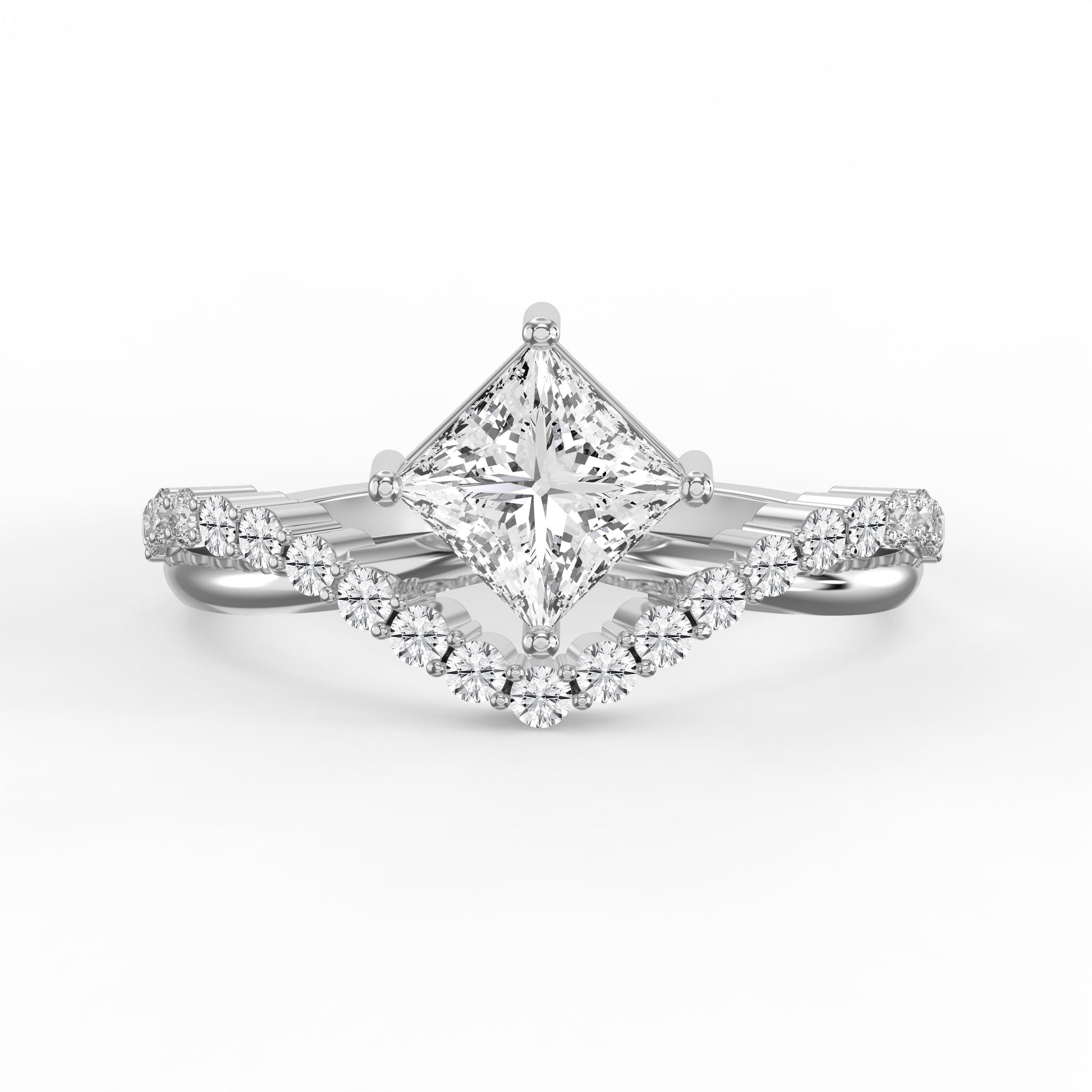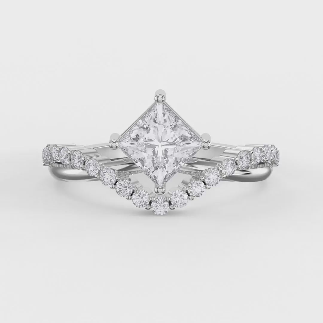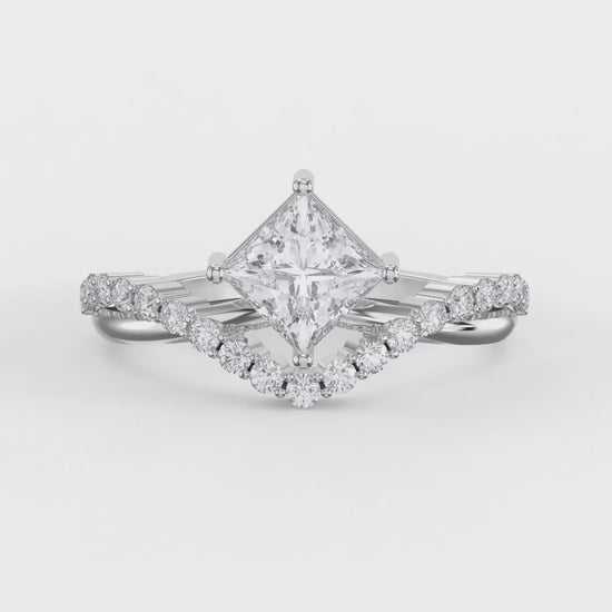 The Axis Embrace Princess Diamond Ring showcases the distinctive geometric brilliance of an Princess-cut diamond, renowned for its step facets and mirror-like clarity.