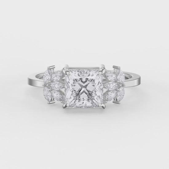 The Bloom Crest Princess Ring showcases timeless elegance with its distinctive princess-cut design, expertly crafted to capture light and brilliance.