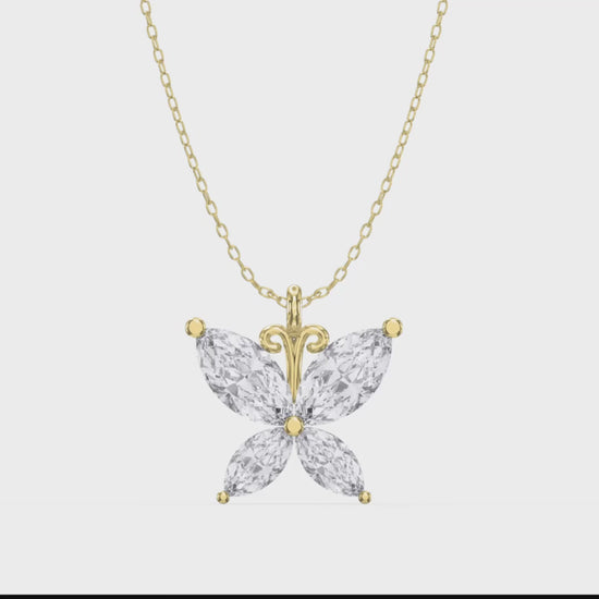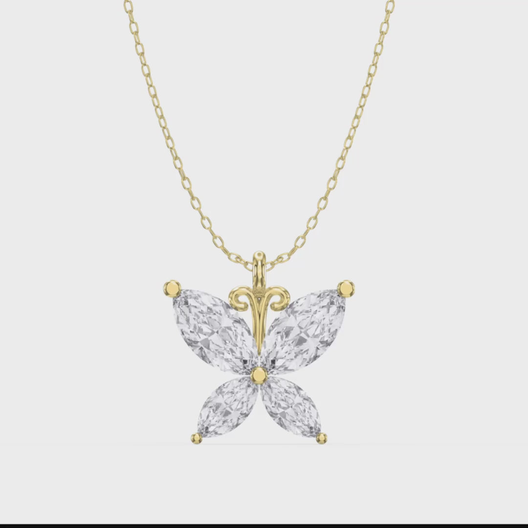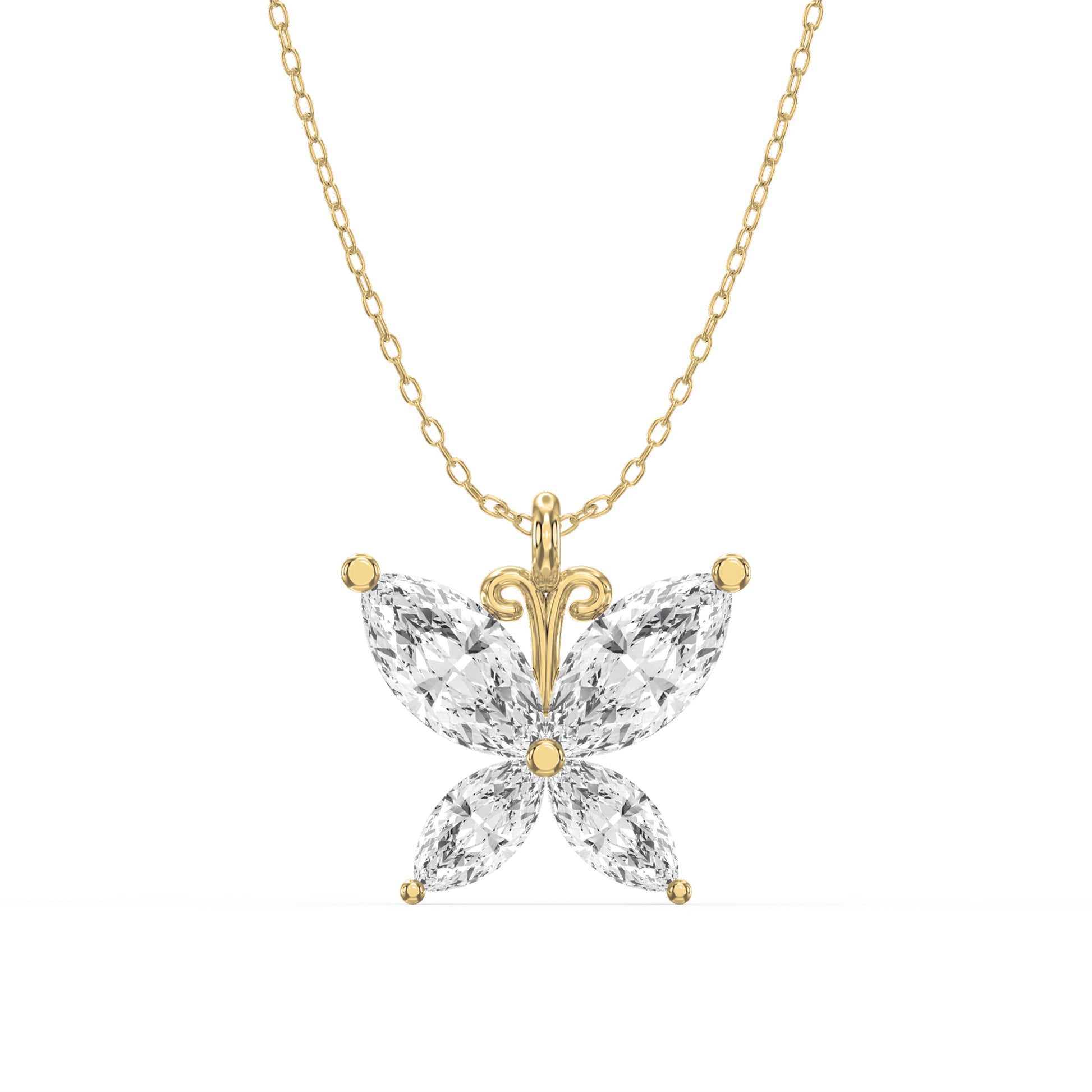 Delicate, graceful, and full of meaning — theButterfly Design Diamond Pendant Necklaceis a stunning representation of transformation and beauty. Crafted in radiant yellow gold, the pendant featuresfour perfectly set marquise-cut diamondsarranged in a butterfly design, creating a symbol of freedom, growth, and elegance.