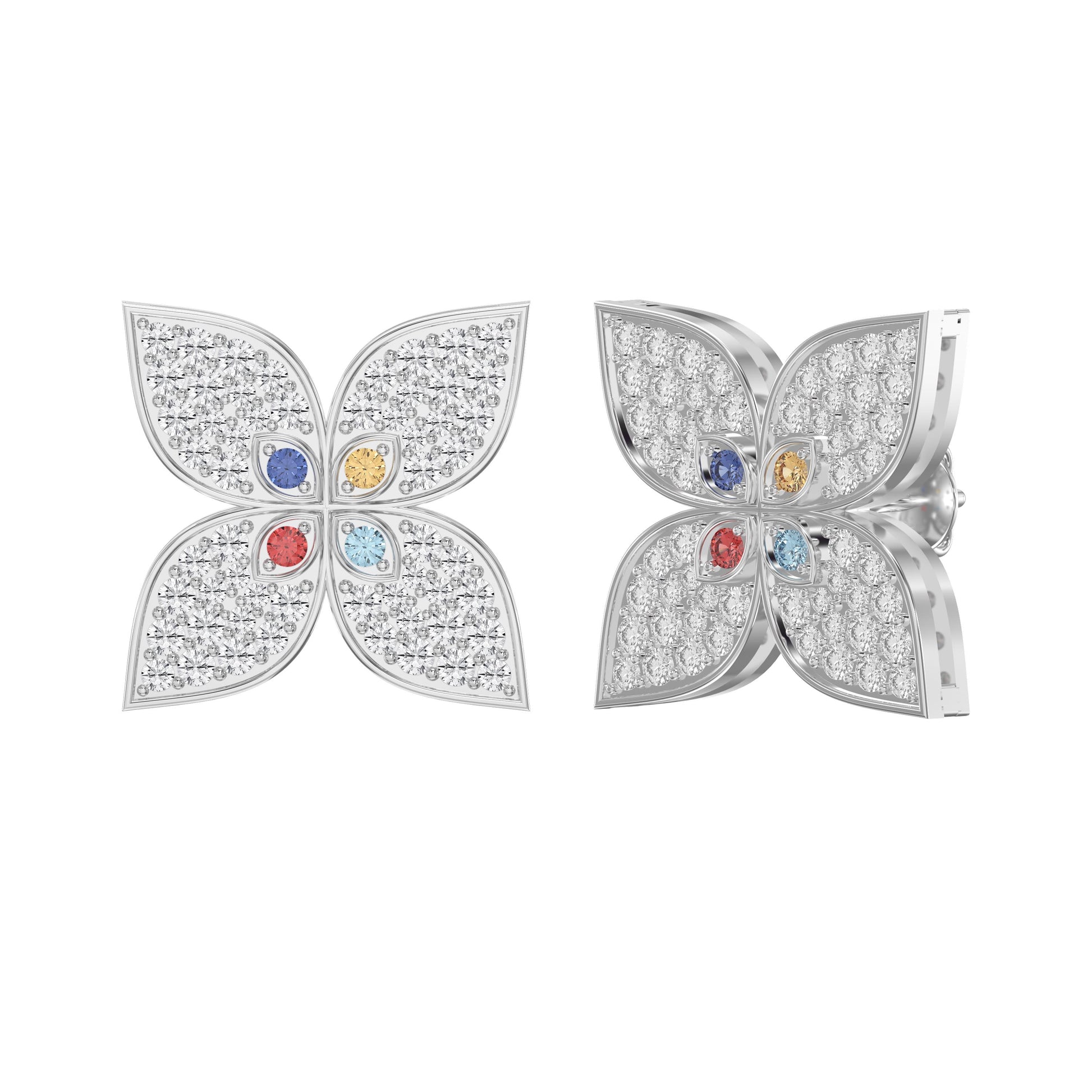 Chromatic Clover Fashion Earrings feature a striking four-leaf design with vibrant color variations that capture light beautifully. Each pair showcases meticulous craftsmanship with polished surfaces and dimensional detailing, making them an ideal accent for both everyday wear and special occasions.