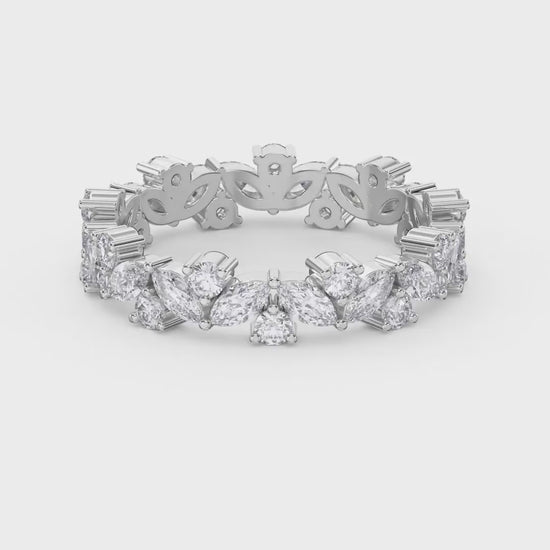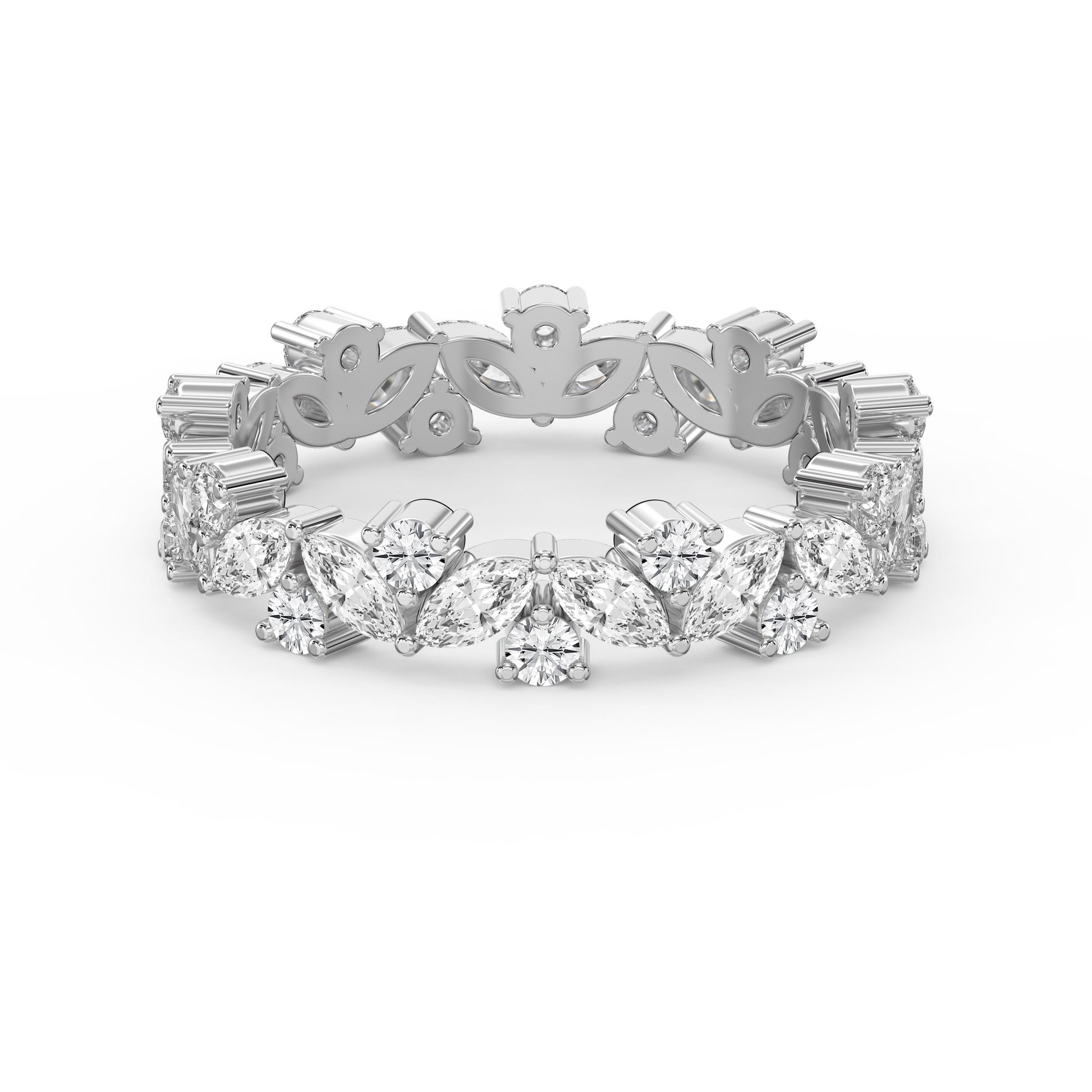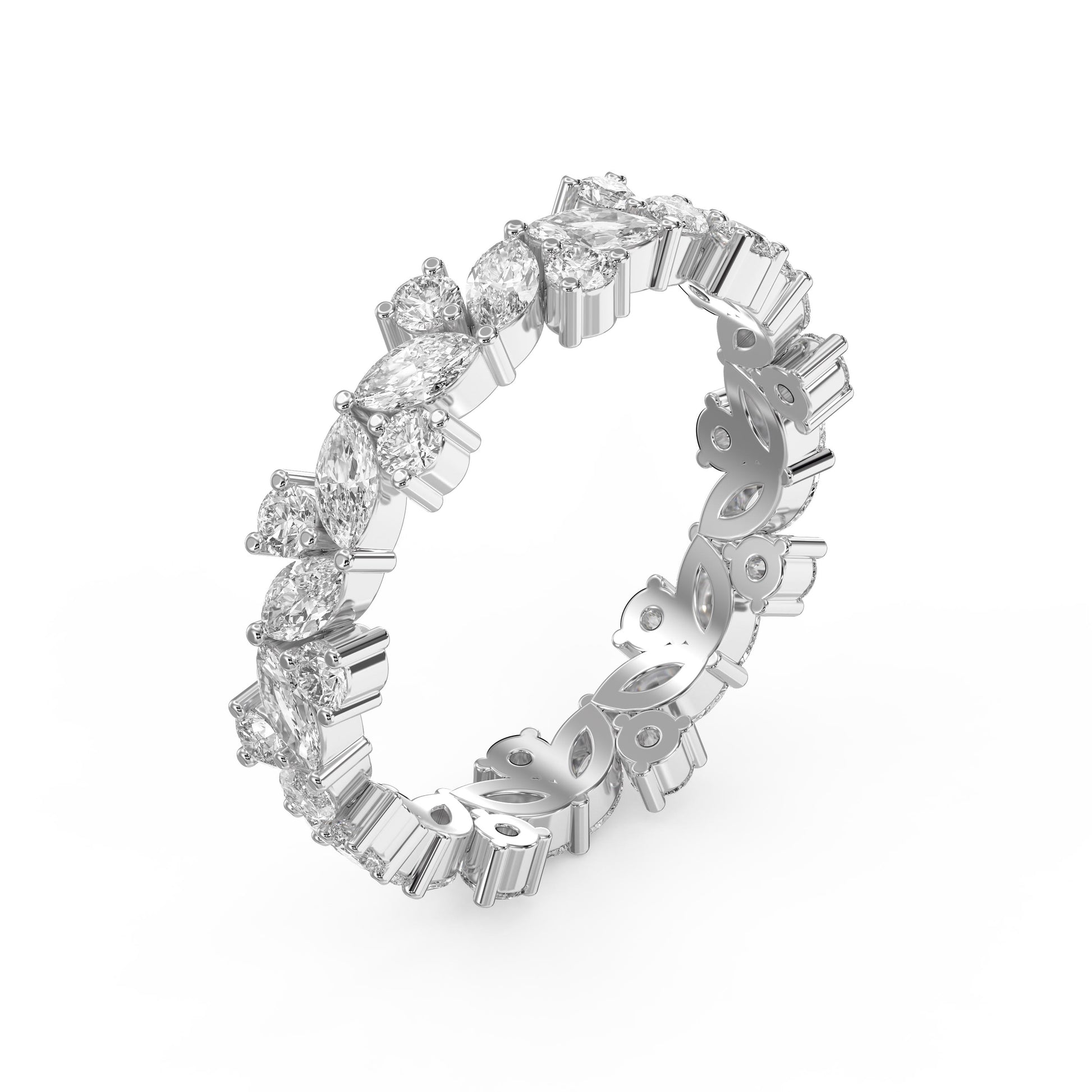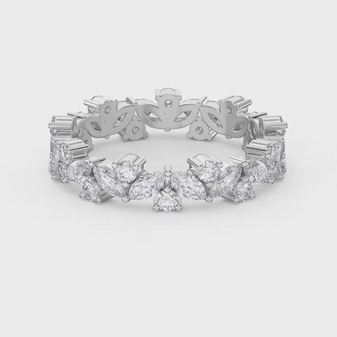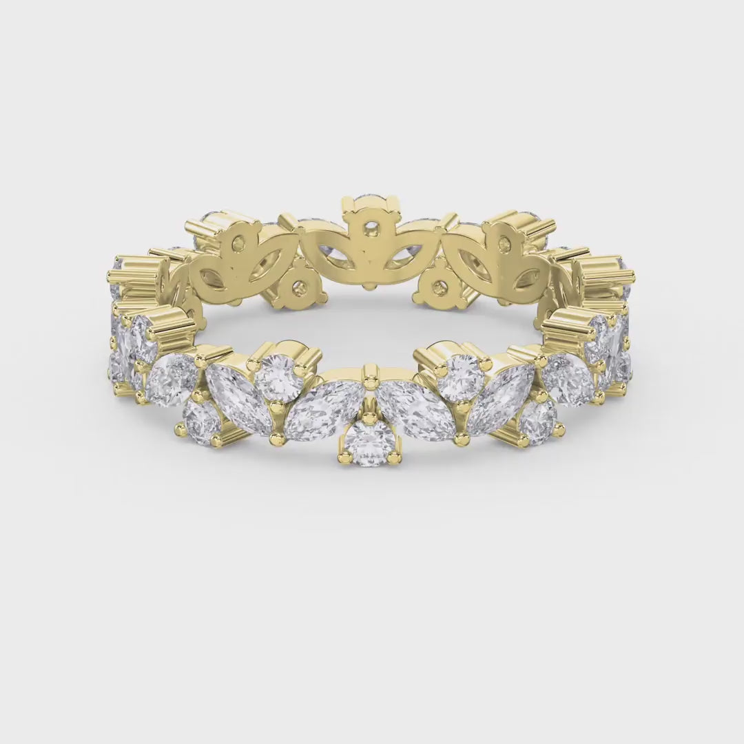 Elevate your collection with this sophisticated cluster design ring, where round and marquise diamonds converge in harmonious brilliance. The interplay of geometric cuts creates dynamic light refraction, while the cluster setting maximizes visual impact without requiring an oversized center stone.