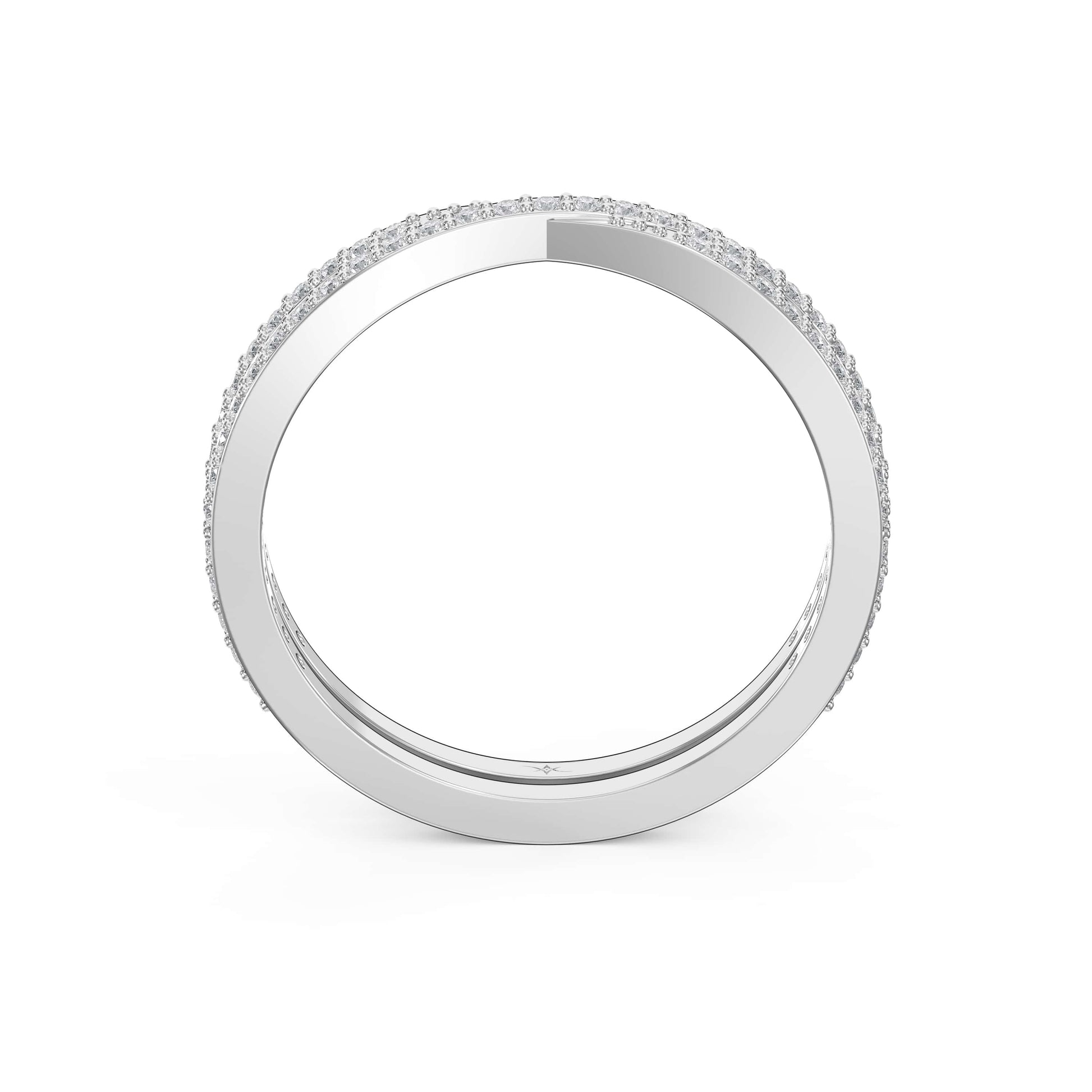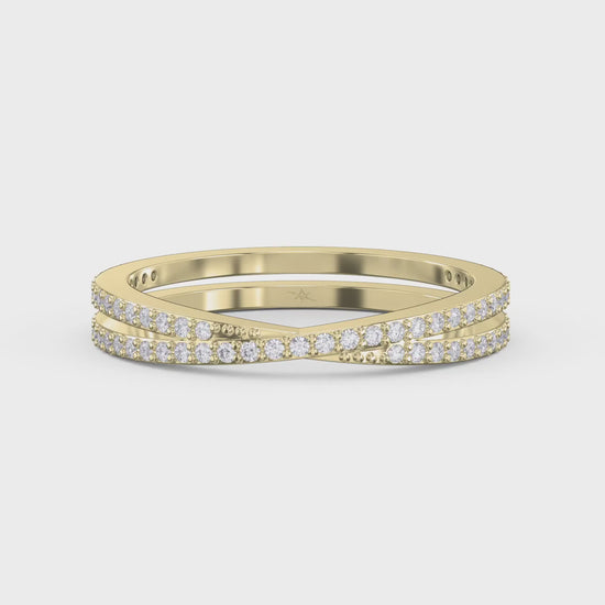 Crafted with precision, this matching band features two gracefully interlaced rows of shimmering round-cut diamonds, forming a criss - cross pattern that symbolizes unity and elegance. Whether worn alone for a minimalist sparkle or paired with an engagement ring, its refined design enhances any look.