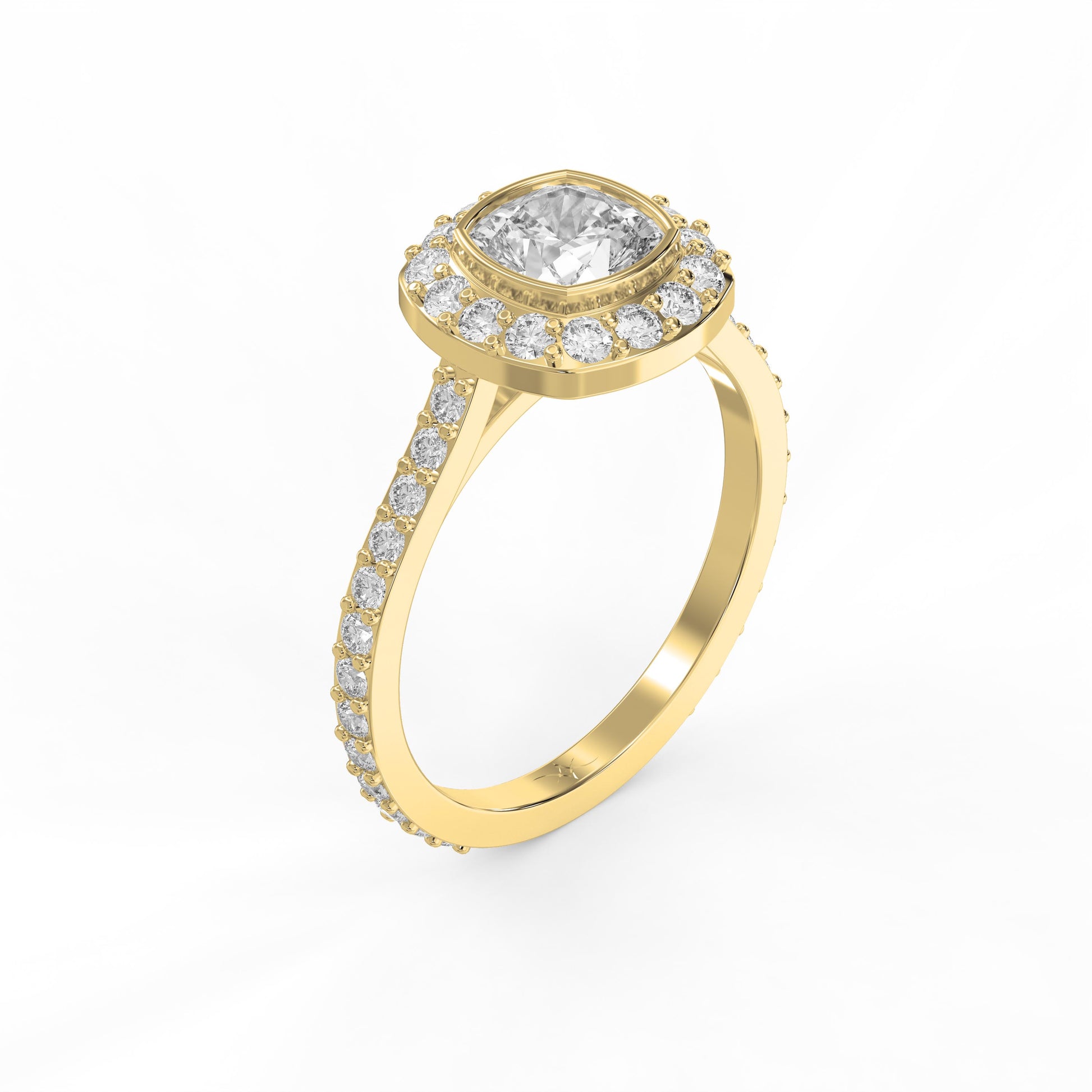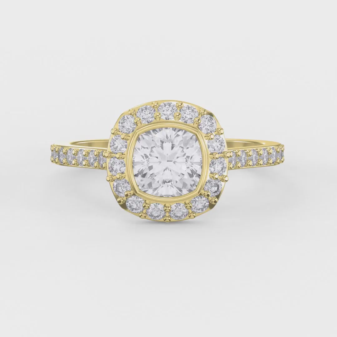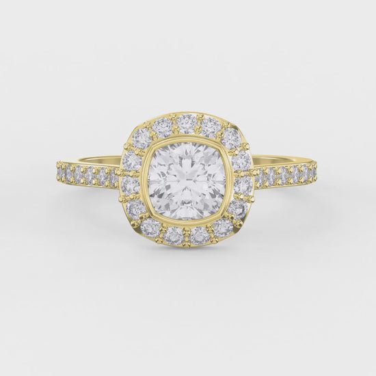 Elevate your engagement with this sophisticated cushion-cut diamond ring, expertly crafted by Valam design.