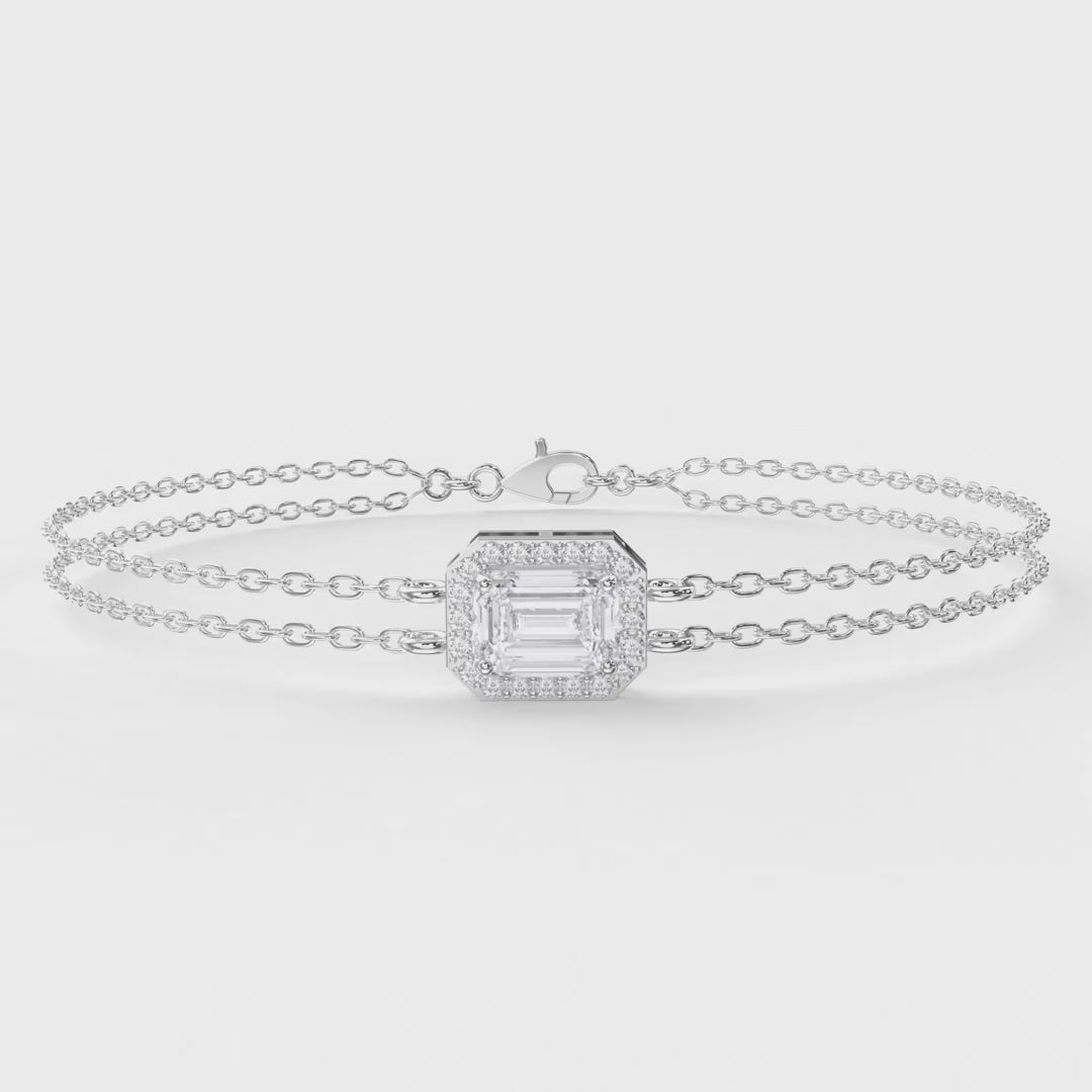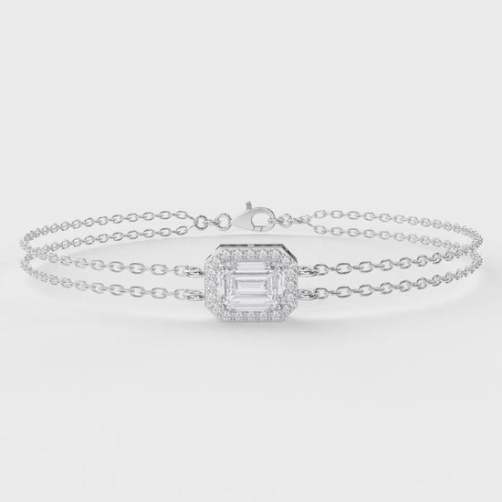 Diamond Bracelet Chain with Emerald Cut Halo Center – Double Chain Elegant Design
