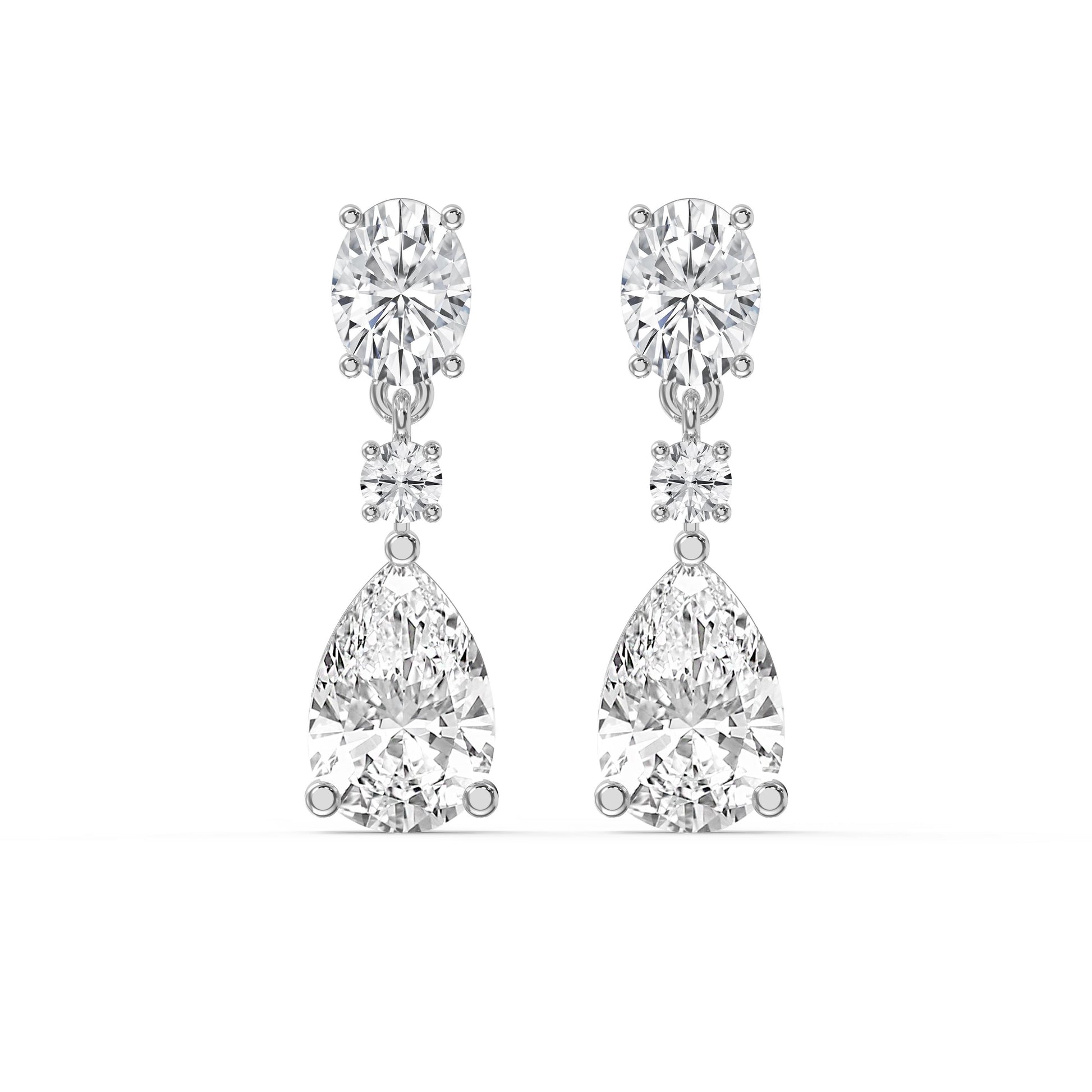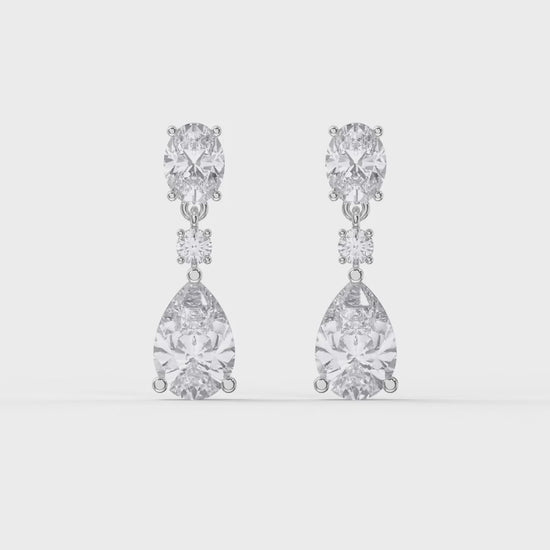 Add timeless sophistication to your jewelry collection with our Elegant Diamond Drop Earrings. Featuring a stunning combination of oval cut, round brilliant, and pear cut diamonds, these earrings are designed to sparkle beautifully with every movement.