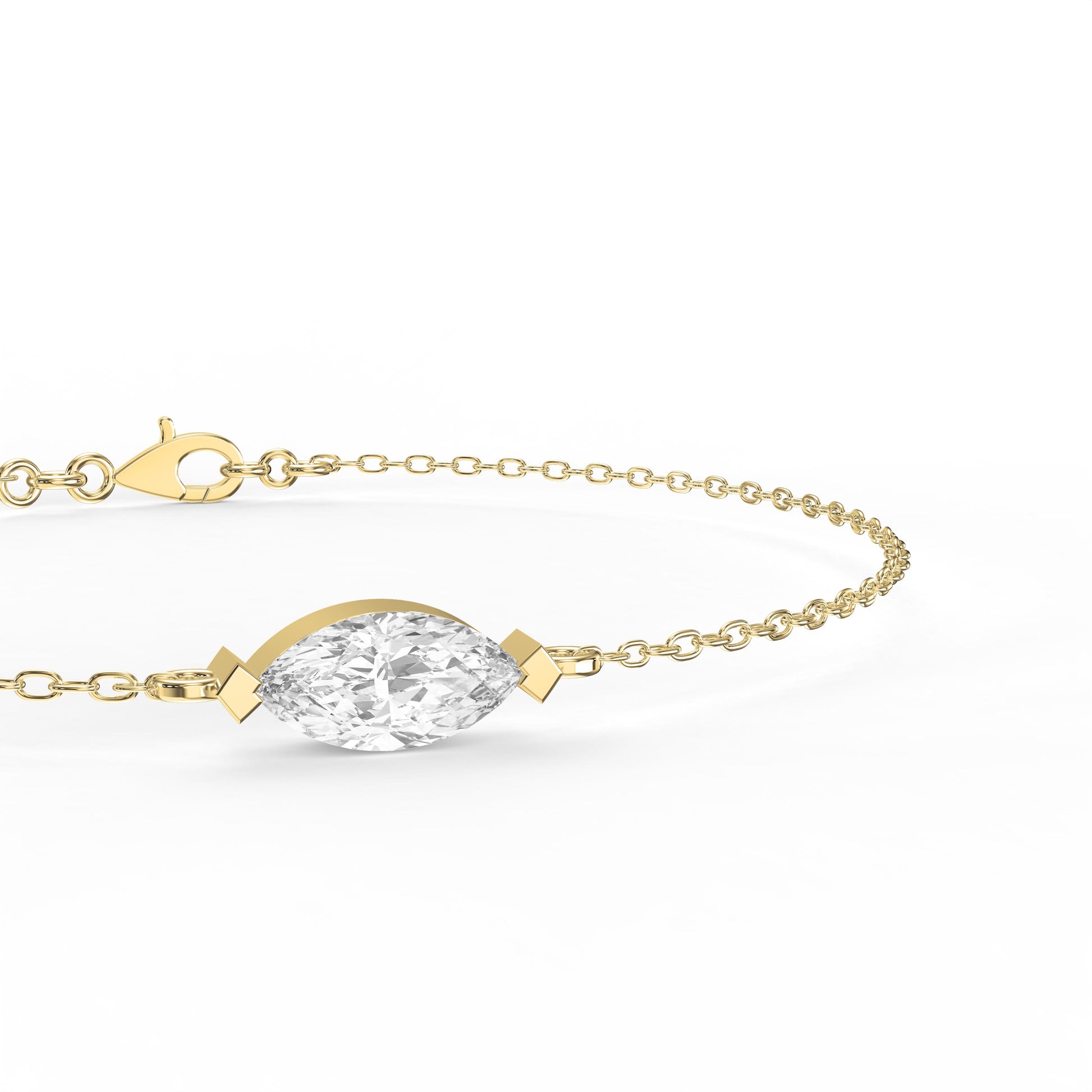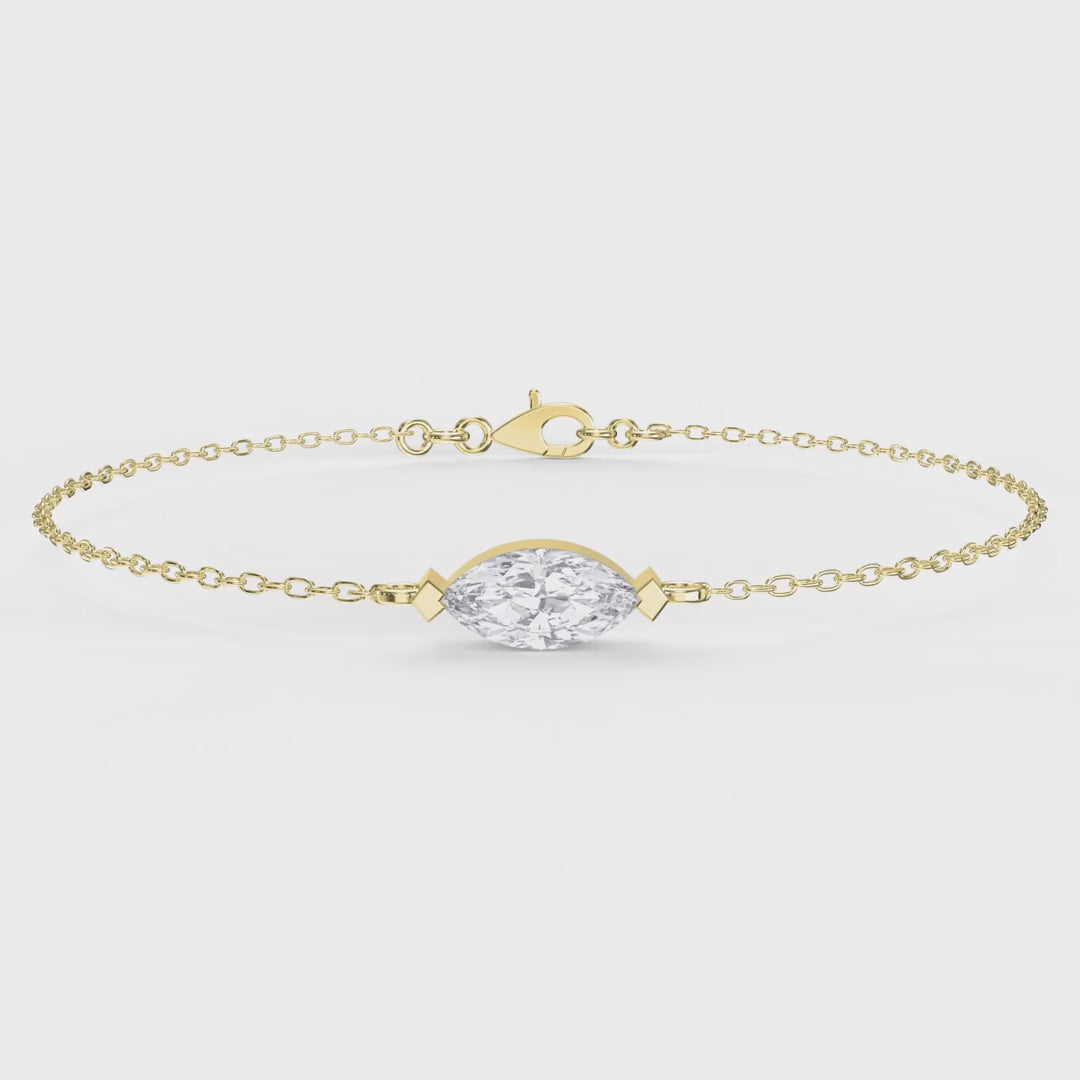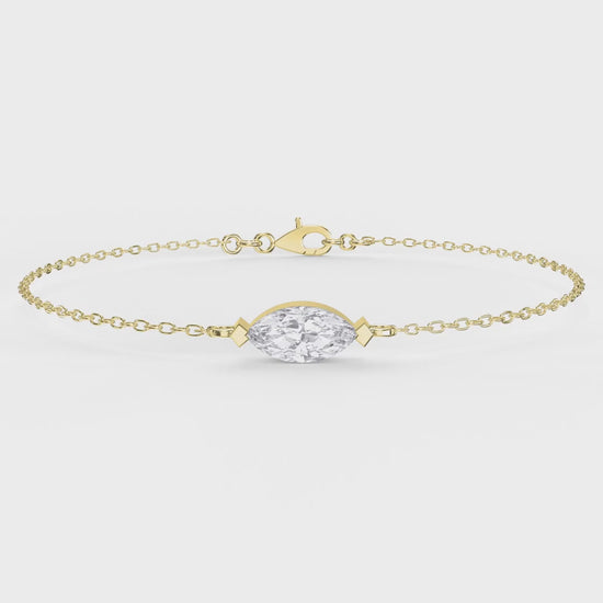Elevate your everyday style with the timeless beauty of the Marquise Diamond Solitaire Chain Bracelet by Valam DesignThis elegant bracelet features a brilliant marquise-cut diamond, securely set in a sleek, minimalistic frame that highlights the stone’s elongated shape and eye-catching sparkle.
