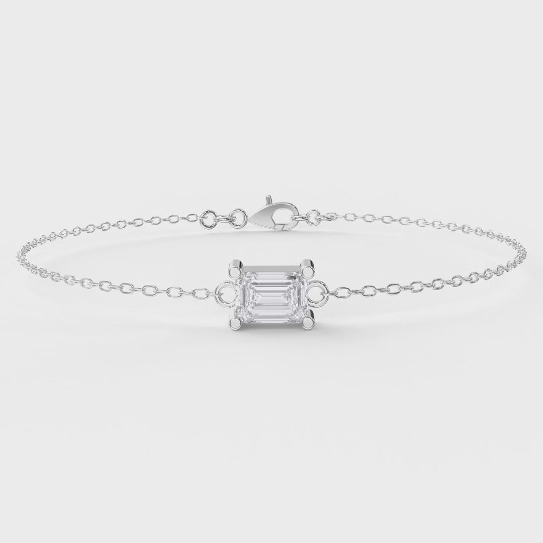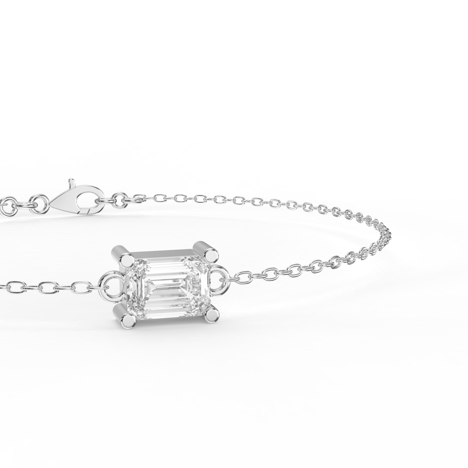 This stunning bracelet features a single emerald-cut diamond that radiates clarity and brilliance, gracefully secured on a luminous gold chain. Its minimalist yet luxurious design makes it the perfect companion for both everyday wear and special occasions. Whether worn solo for a subtle statement or layered with other bracelets for a chic stacked look, this diamond bracelet adapts effortlessly to your personal style.