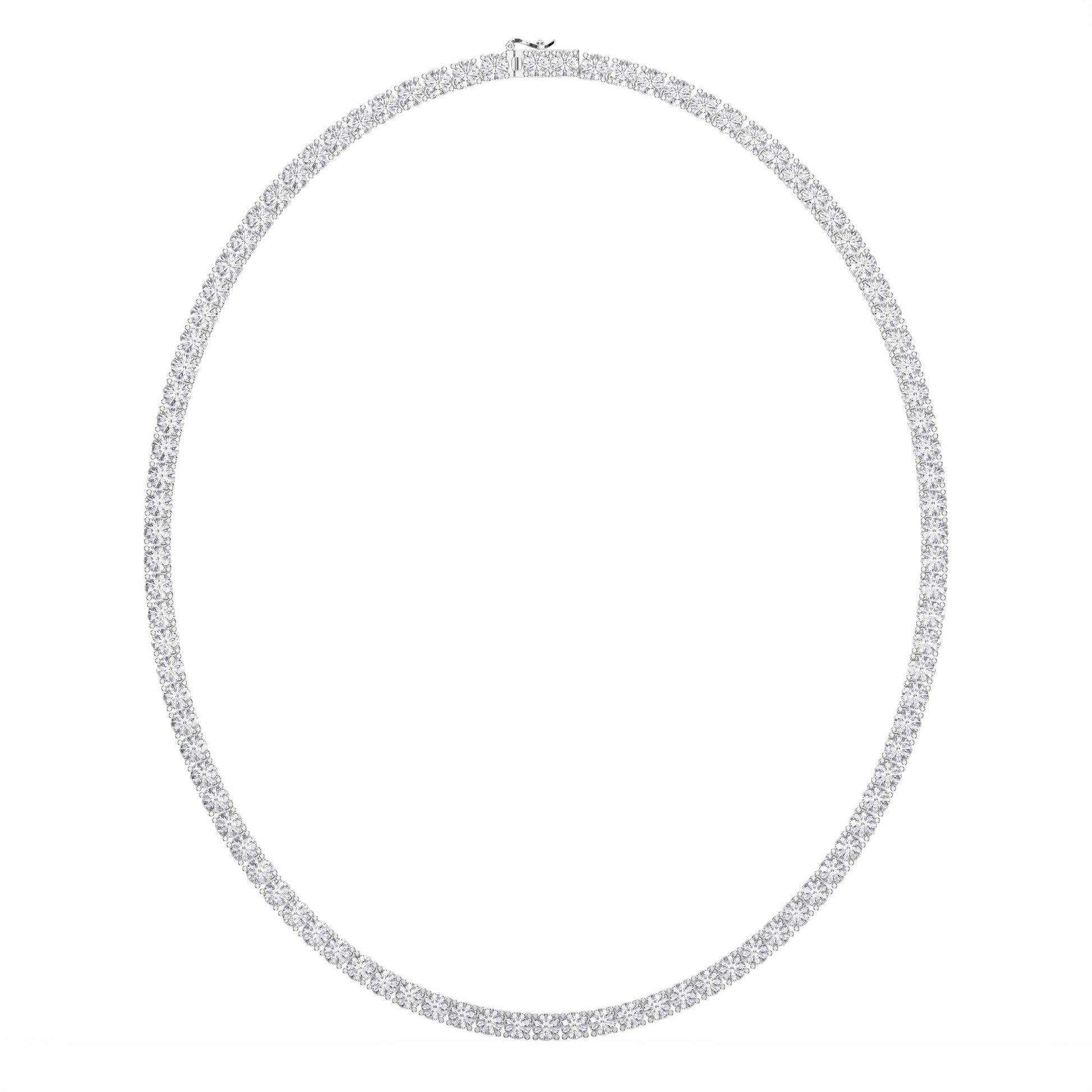 Radiate timeless elegance with our Round Shape Diamond Tennis Necklace, a masterpiece crafted with precision and passion. Featuring 0.25 pointer round brilliant-cut diamonds, this necklace totals an impressive 19.25 carats of uninterrupted sparkle—each stone perfectly matched for color, clarity, and cut.