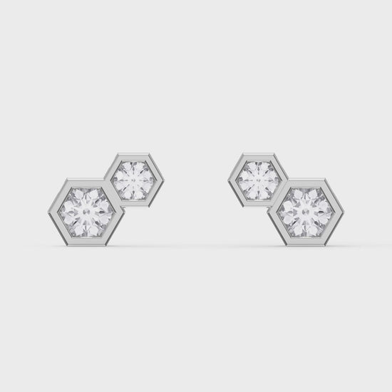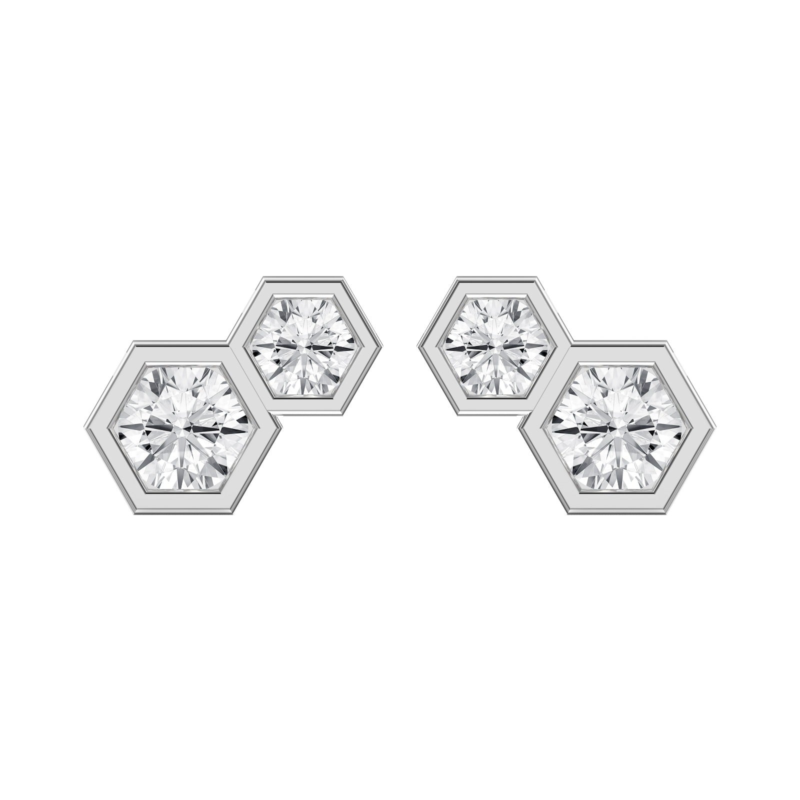 Geometric Charm Meets Diamond Brilliance. Add a contemporary twist to your jewelry box with the Honeycomb Hex Design Round Shape Earrings Studs. Inspired by the natural geometry of honeycombs, these striking earrings feature two bezel-set round diamonds in sleek hexagonal frames, creating a perfect blend of symmetry, sparkle, and sophistication.