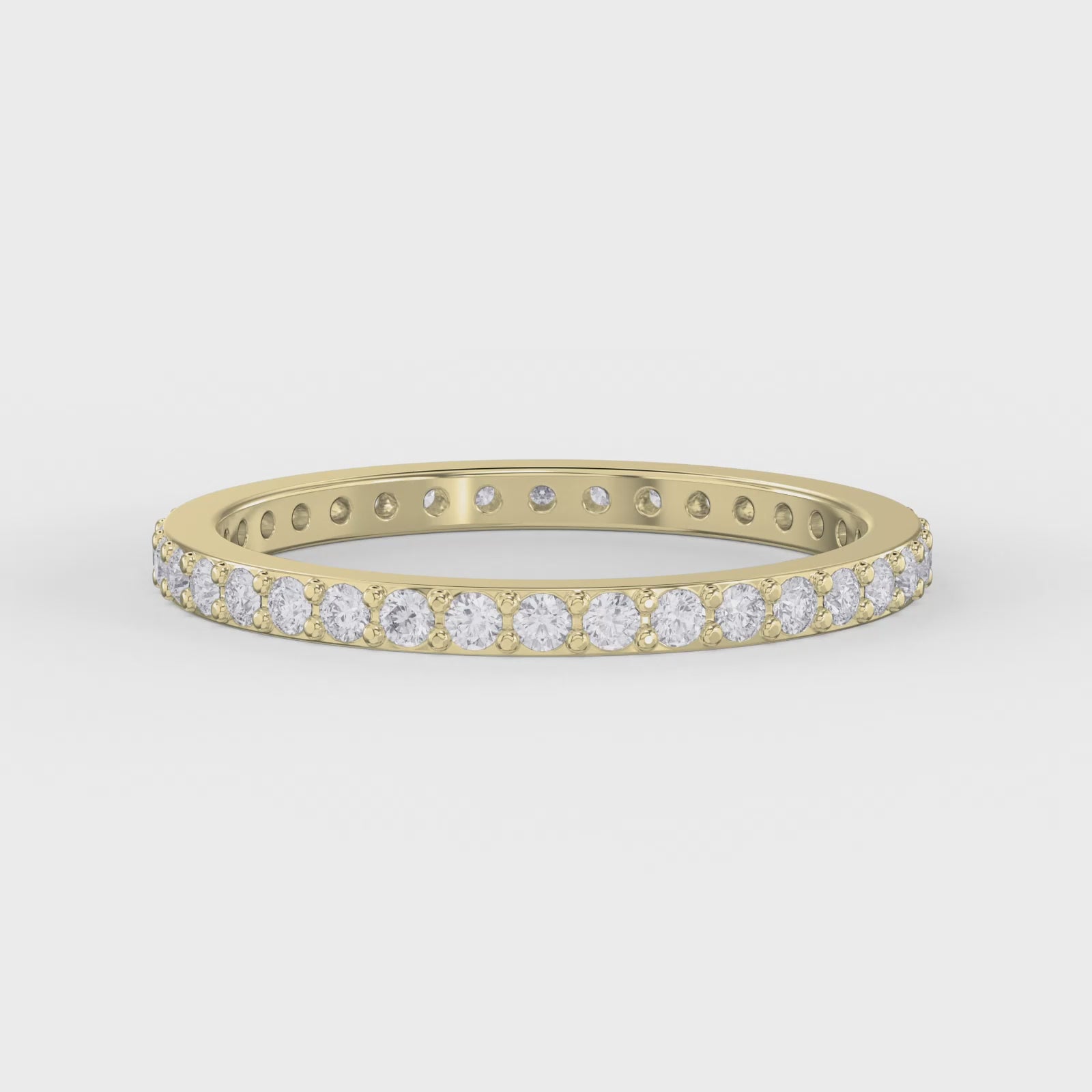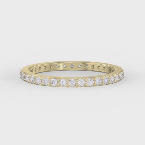 This elegant full eternity ring showcases a seamless circle of round brilliant diamonds, meticulously set around the entire band to create a look of endless sparkle. The minimalist design speaks volumes through its sophisticated elegance and classic silhouette, making it the perfect piece for both everyday wear and meaningful milestones.