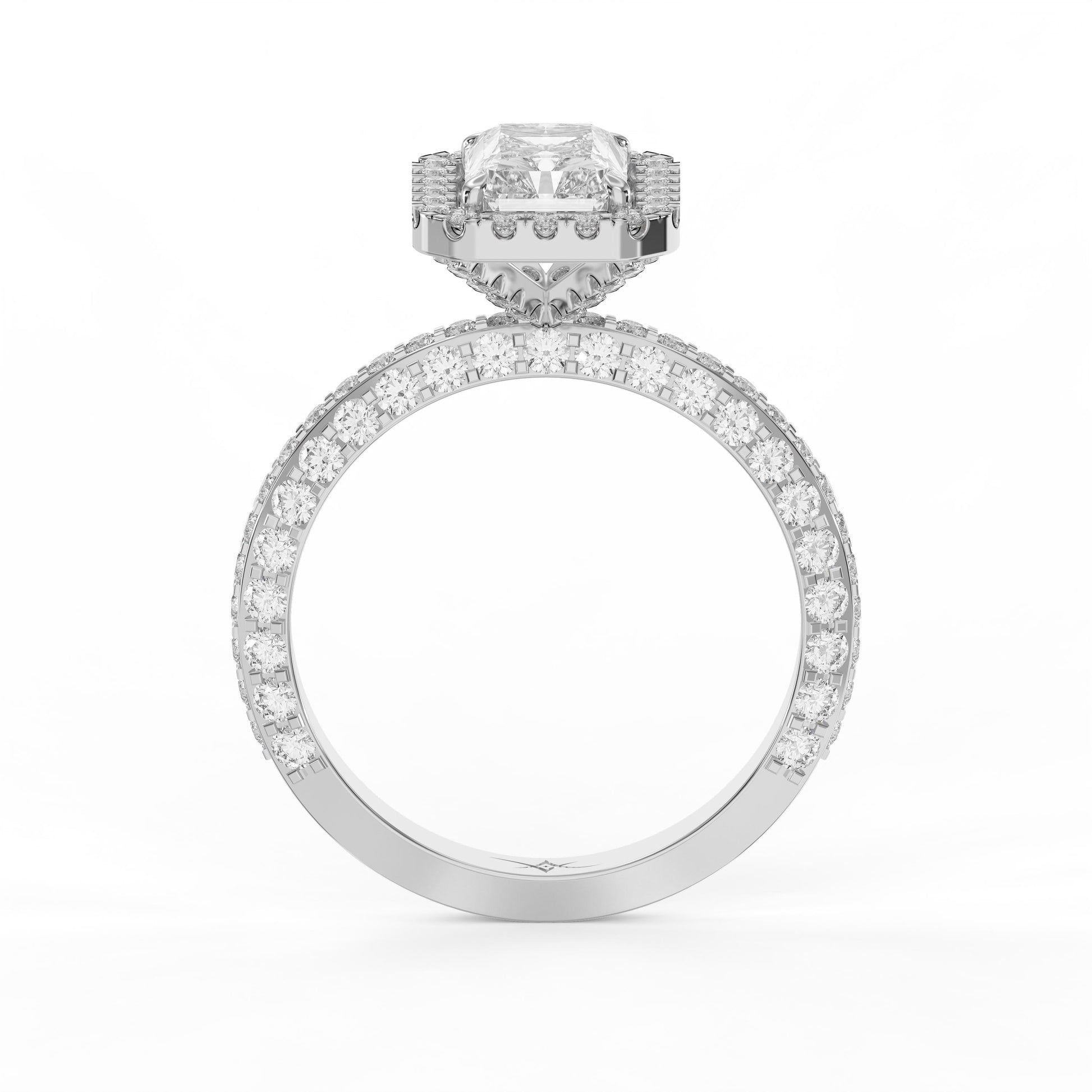 Each metal complements the Radiant exceptional sparkle, making this ring a versatile choice for engagements, anniversaries, or milestone celebrations. The split band architecture adds architectural interest while maintaining comfortable everyday wearability.