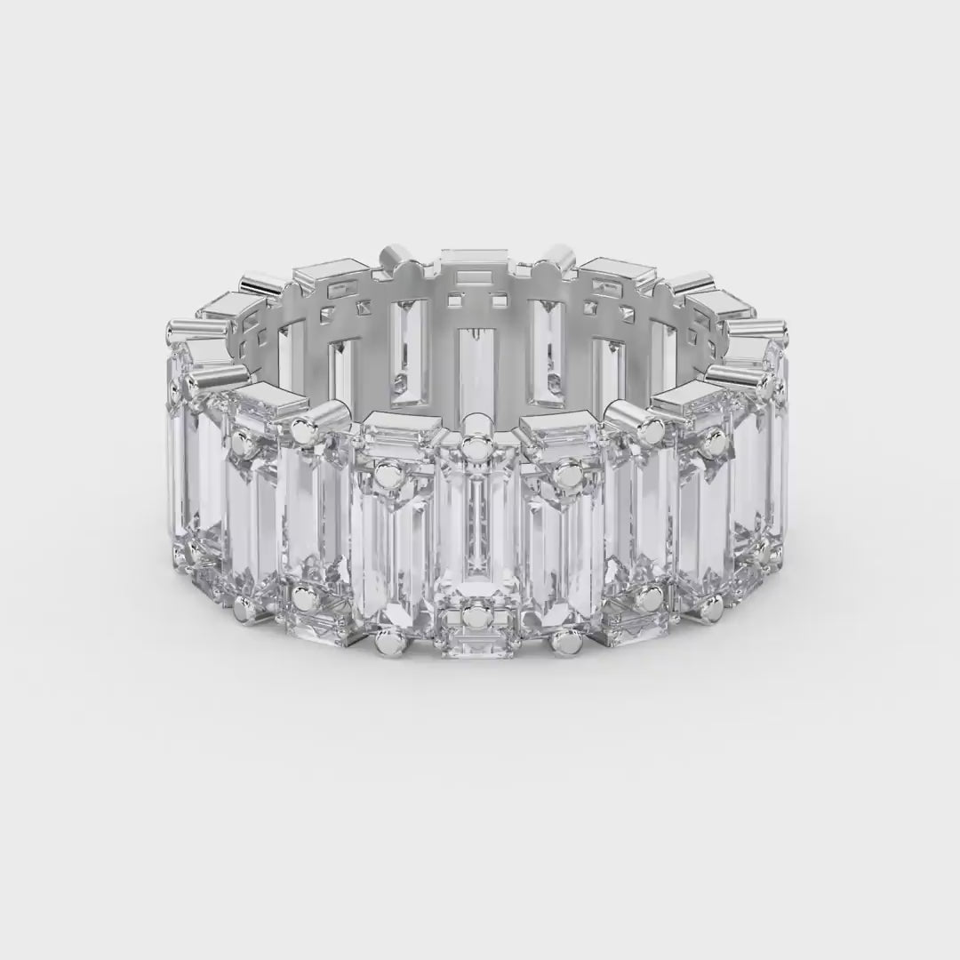 Redefine elegance with the Baguette Diamond Eternity Band, a statement-making piece designed for women who desire both luxury and sophistication. This wide eternity ring showcases a continuous row of brilliant baguette-cut diamonds, meticulously set in a seamless full-circle design that symbolizes eternal love and commitment.