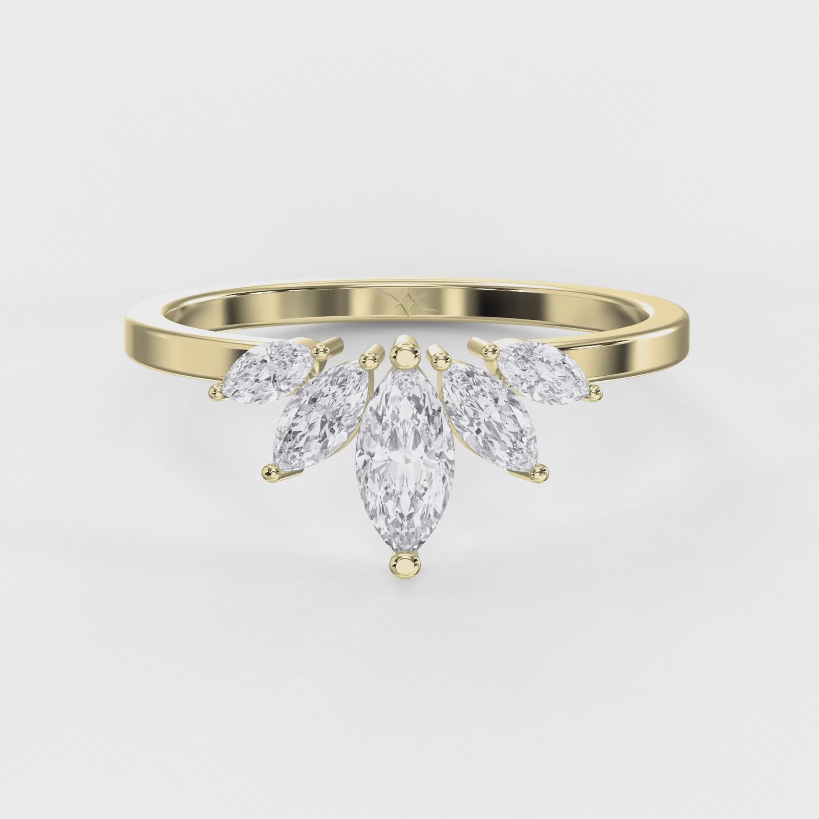 Add the perfect finishing touch to your engagement ring with the stunningMarquise Diamond Curved Wedding Band, available in lab-grown diamondoptions. This elegant band features a gentle curve designed to complement solitaire, oval, or halo engagement rings, creating a seamless, harmonious bridal set.