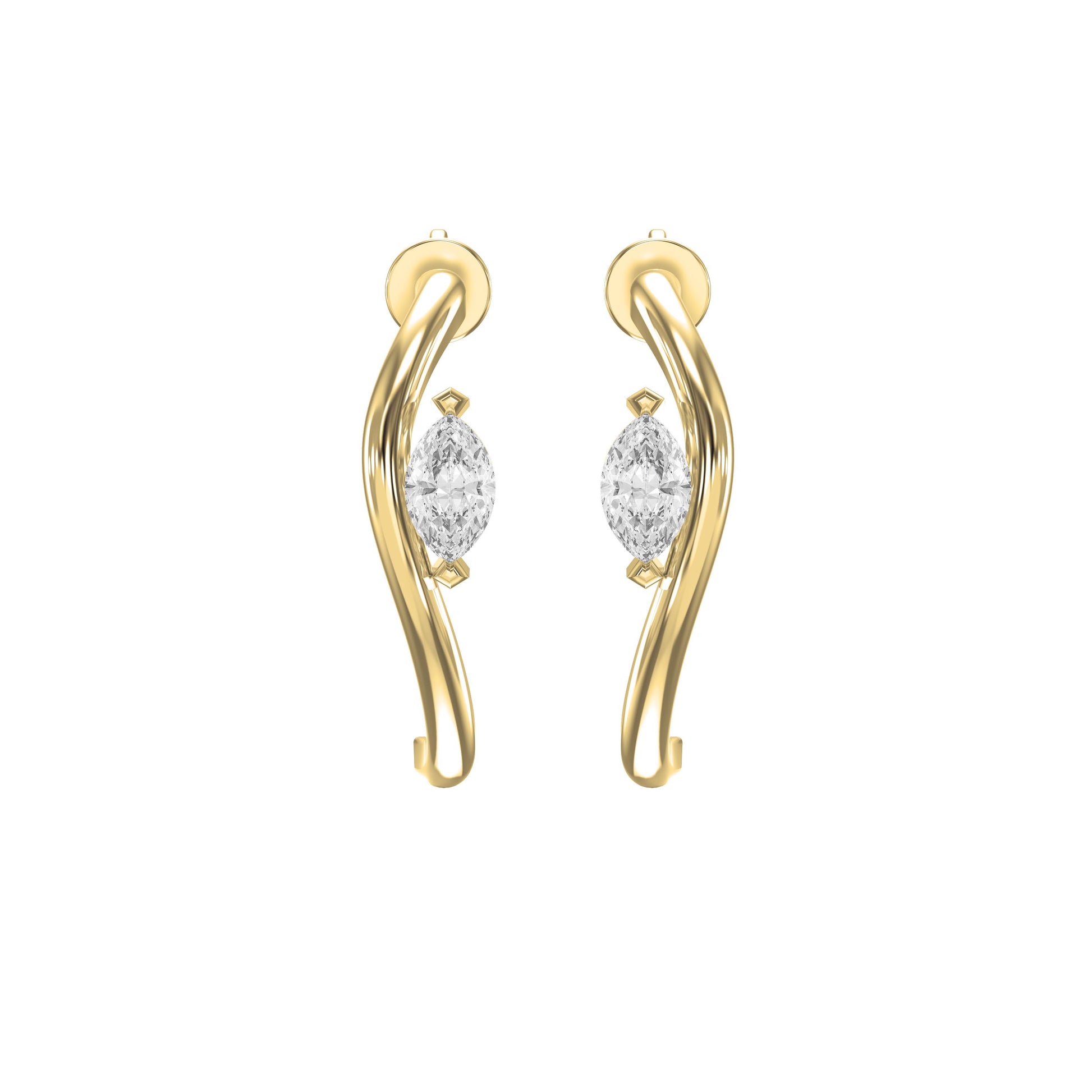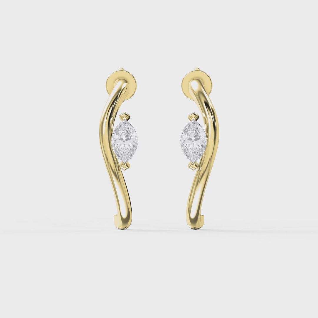 These earrings feature a captivatingmarquise-cut diamondnestled within a sensual, curving frame of polished gold. The open, swirling design mimics an elegant embrace – soft, romantic, and bold all at once. Whether viewed from the front or side, the design offers a unique profile that makes a subtle yet stunning fashion statement.