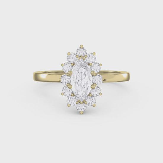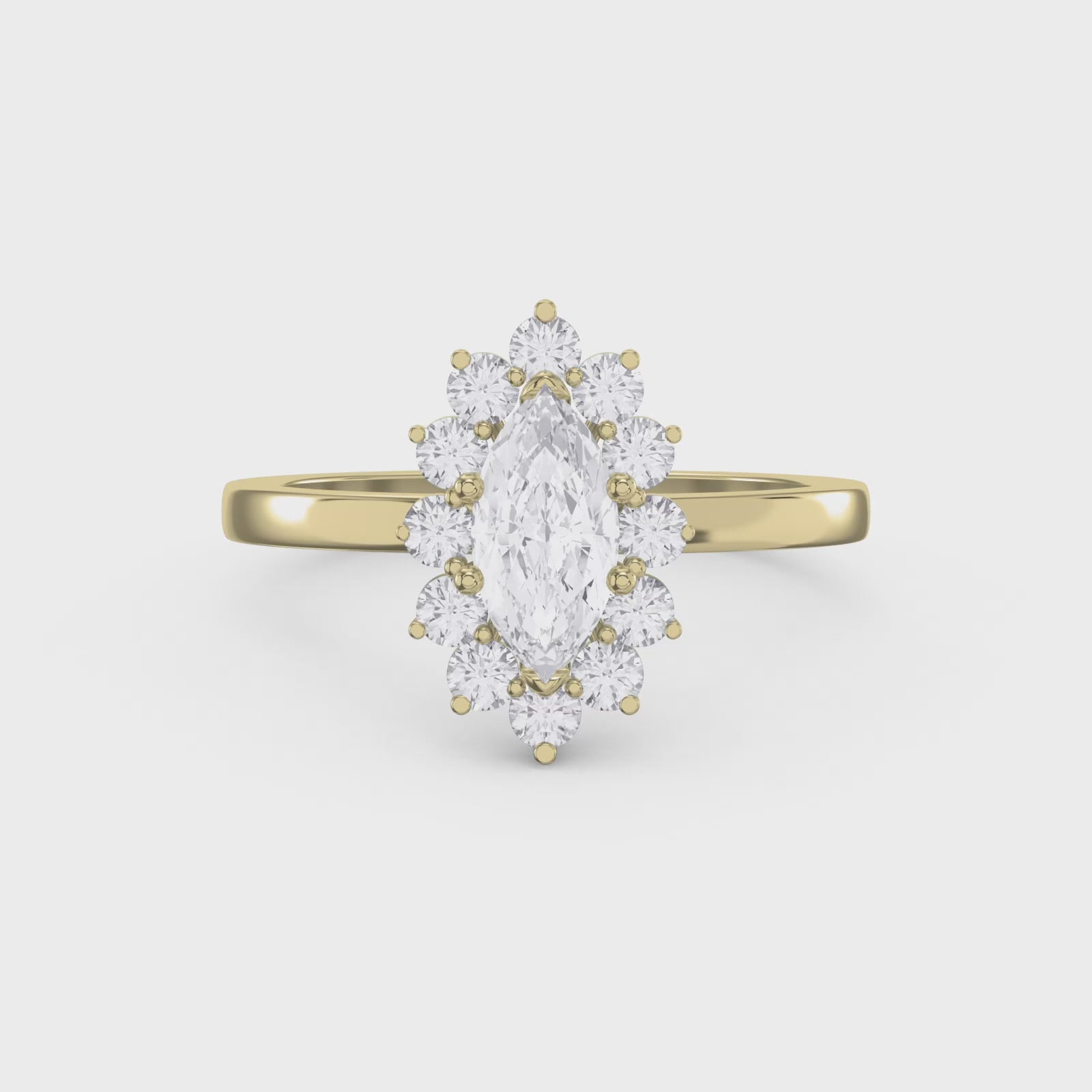 Elevate your engagement with this sophisticated Marquise Halo Solitaire ring, where timeless elegance meets contemporary design.