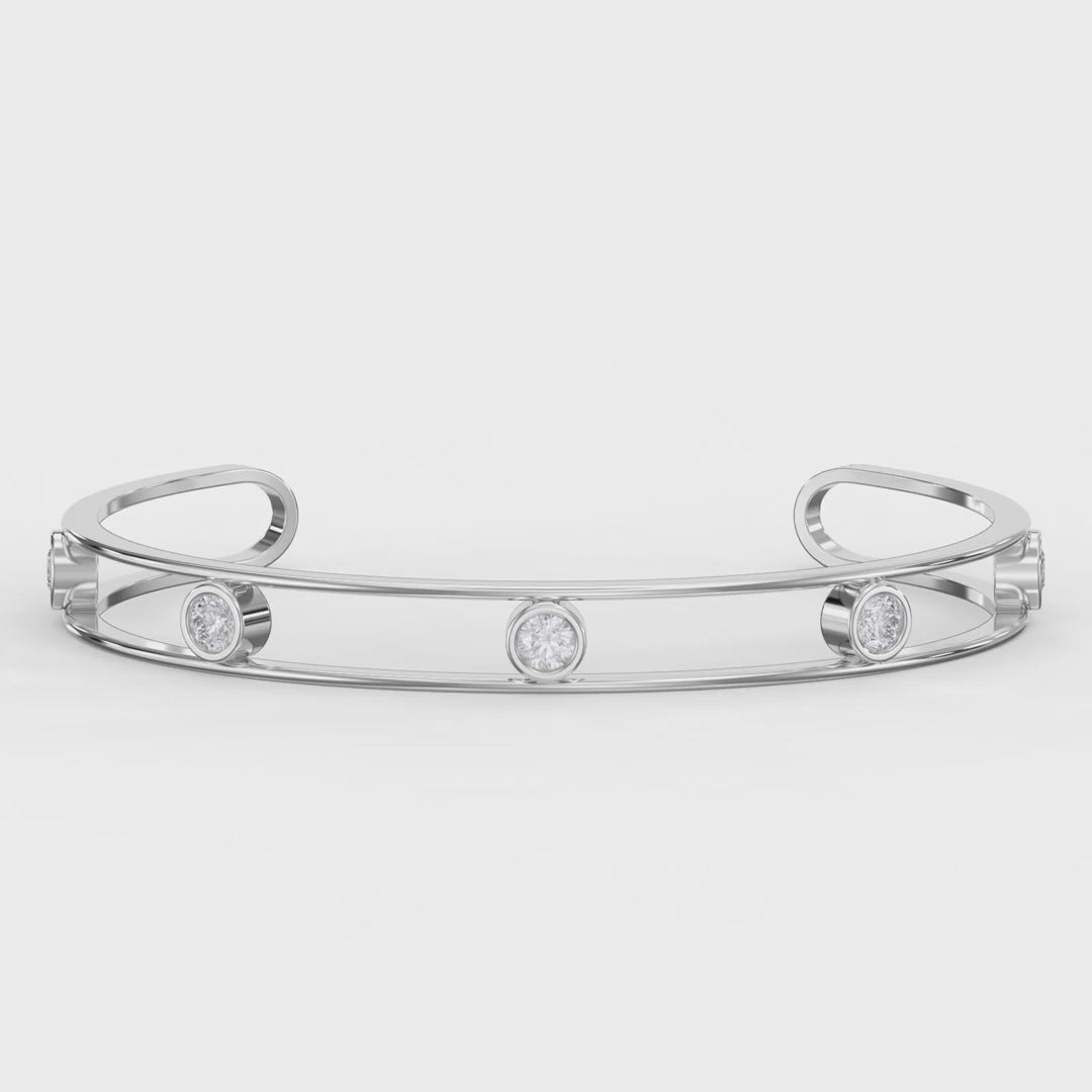 Sleek, refined, and effortlessly stylish, our Minimalist Cuff Bracelet with Bezel Set Round Diamonds is designed for the modern individual who values understated luxury.