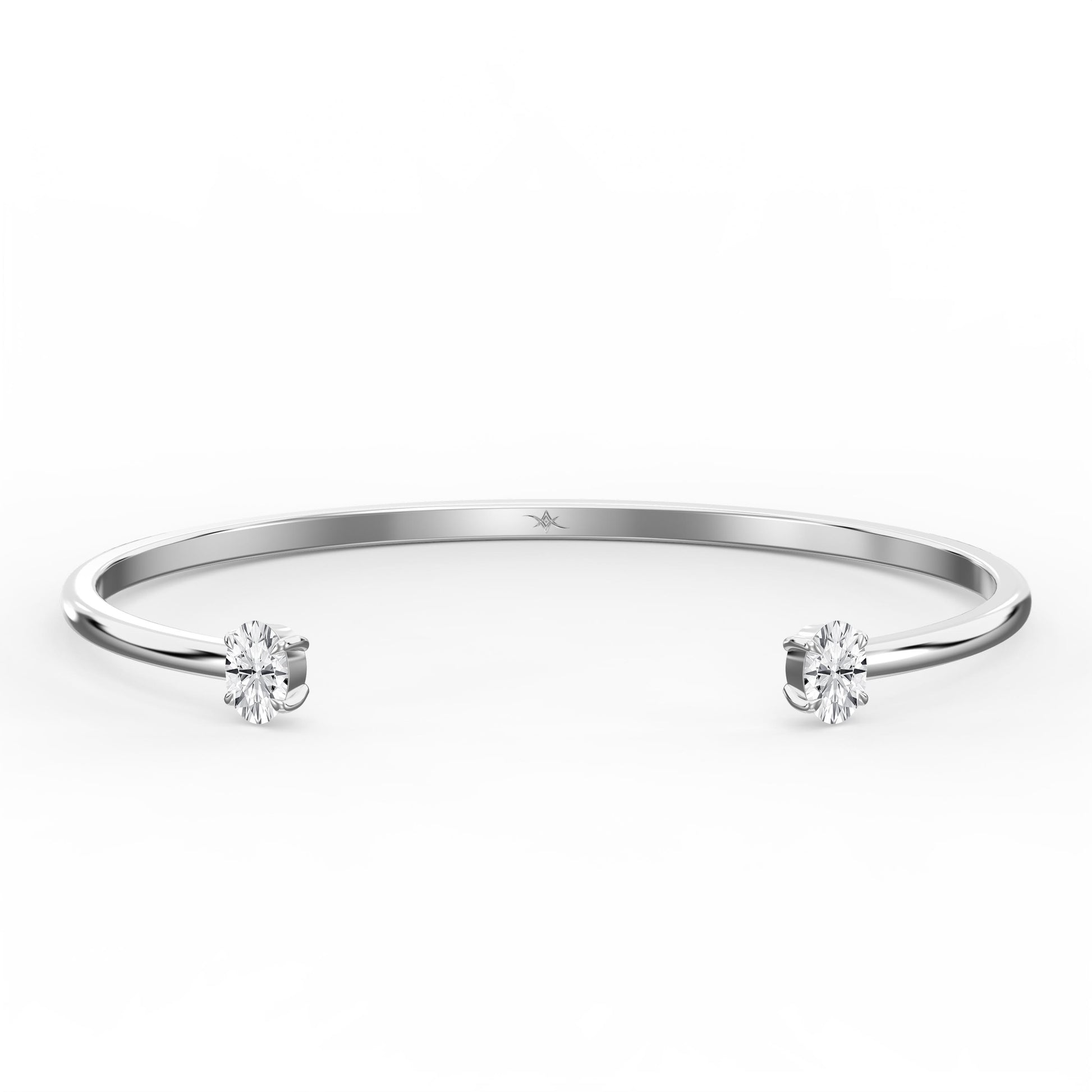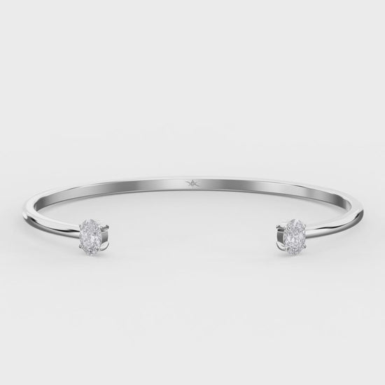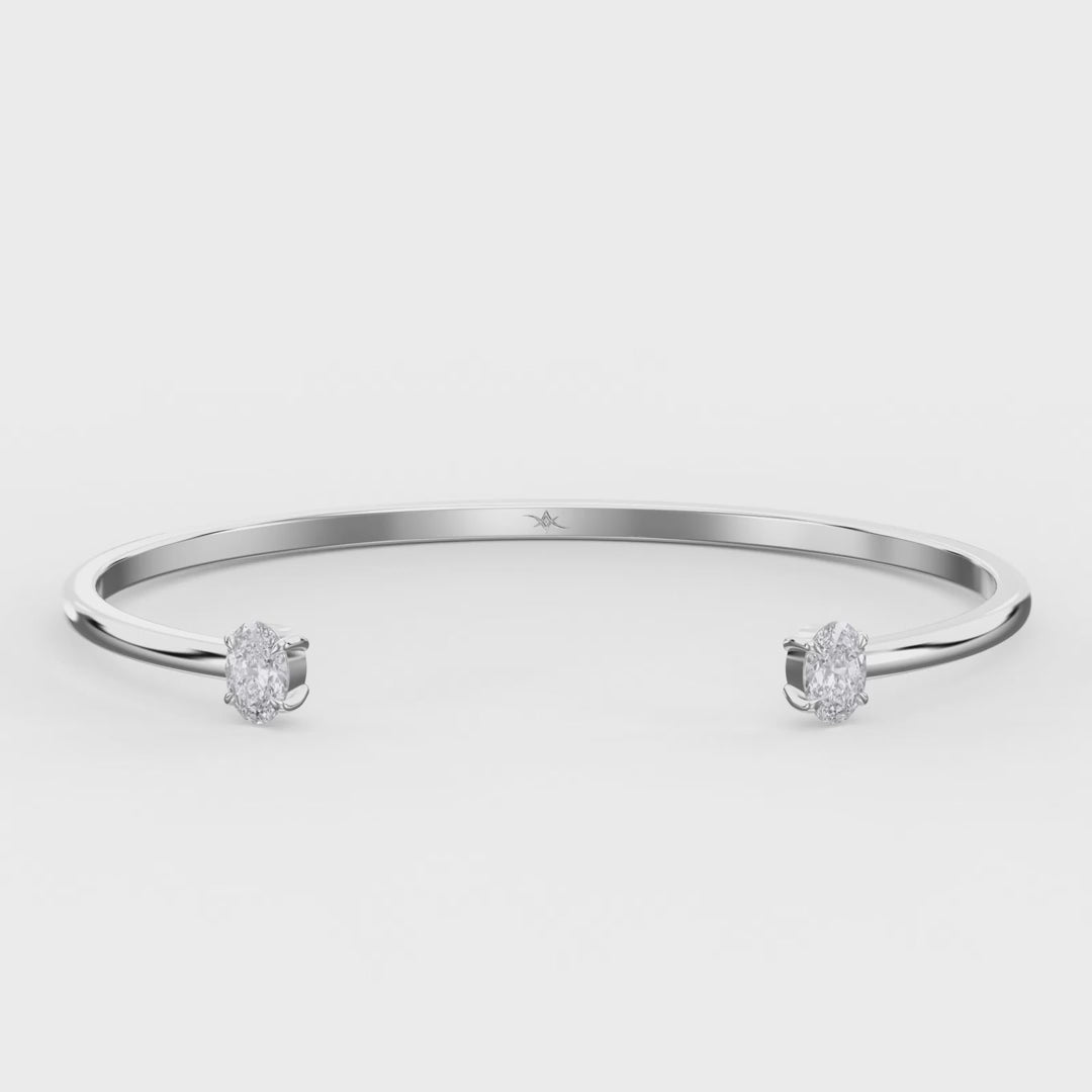 Minimalist Open Cuff Bracelet with Solitaire Oval Diamonds