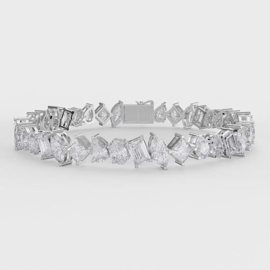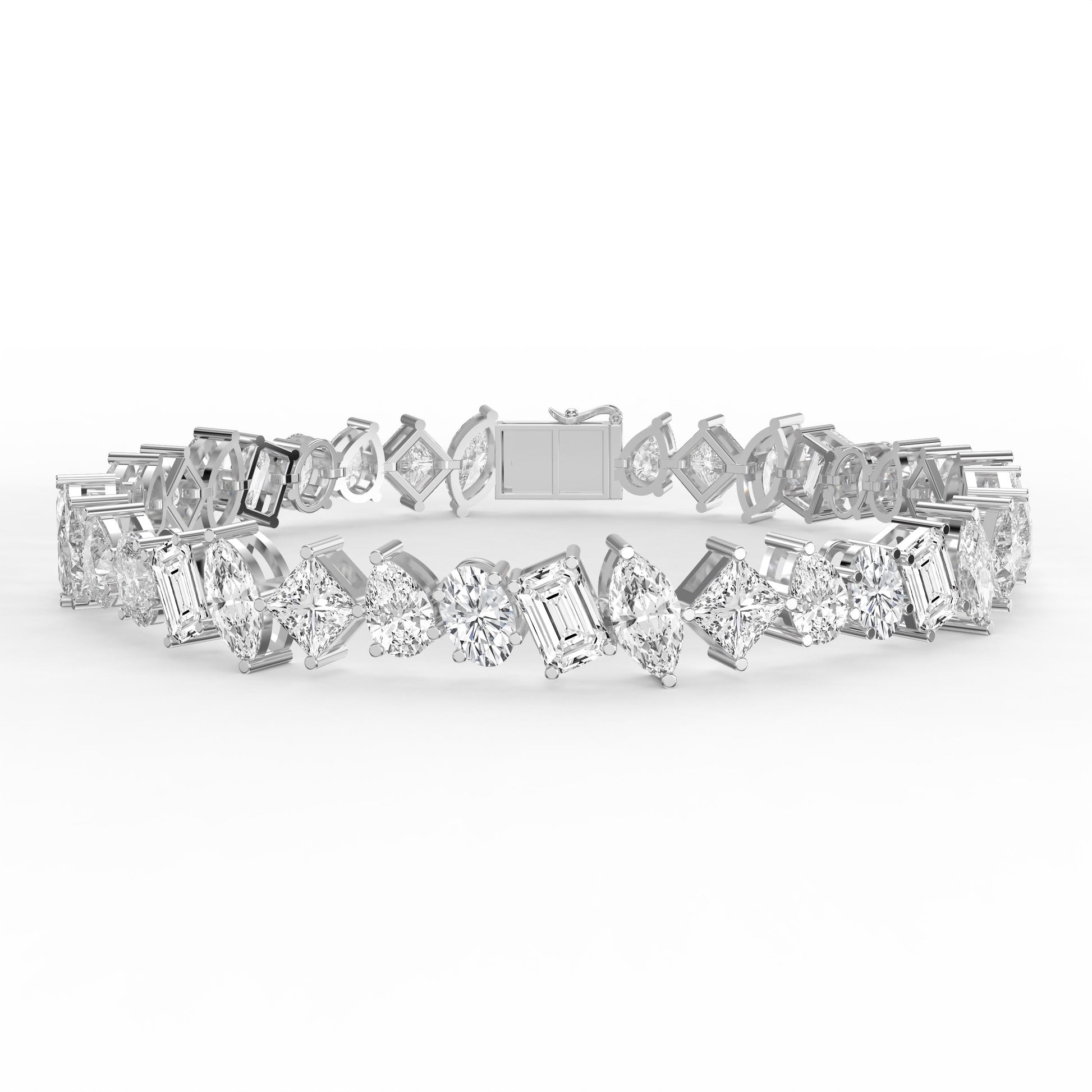 Turn every moment into a statement of elegance with the Multi-Shape Diamond Bracelet, a true symbol of modern luxury and timeless fashion. This meticulously crafted bracelet features a harmonious blend of princess, pear, marquise, emerald, and oval cut diamonds, each radiating brilliance from every angle.