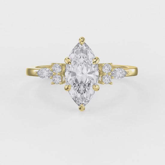 Elevate your engagement with this sophisticated Noble Arc Marquise Ring, a masterpiece of balanced elegance.
