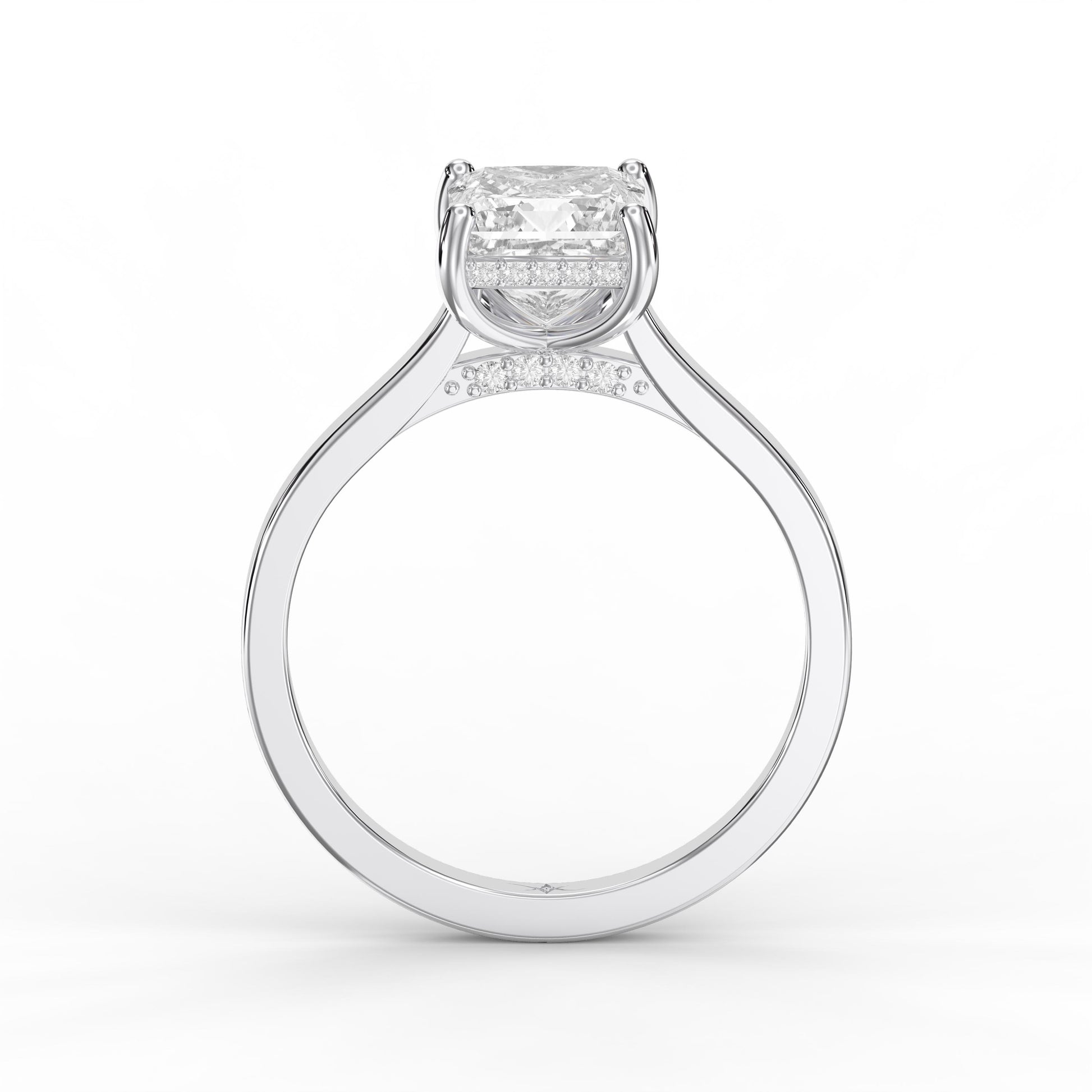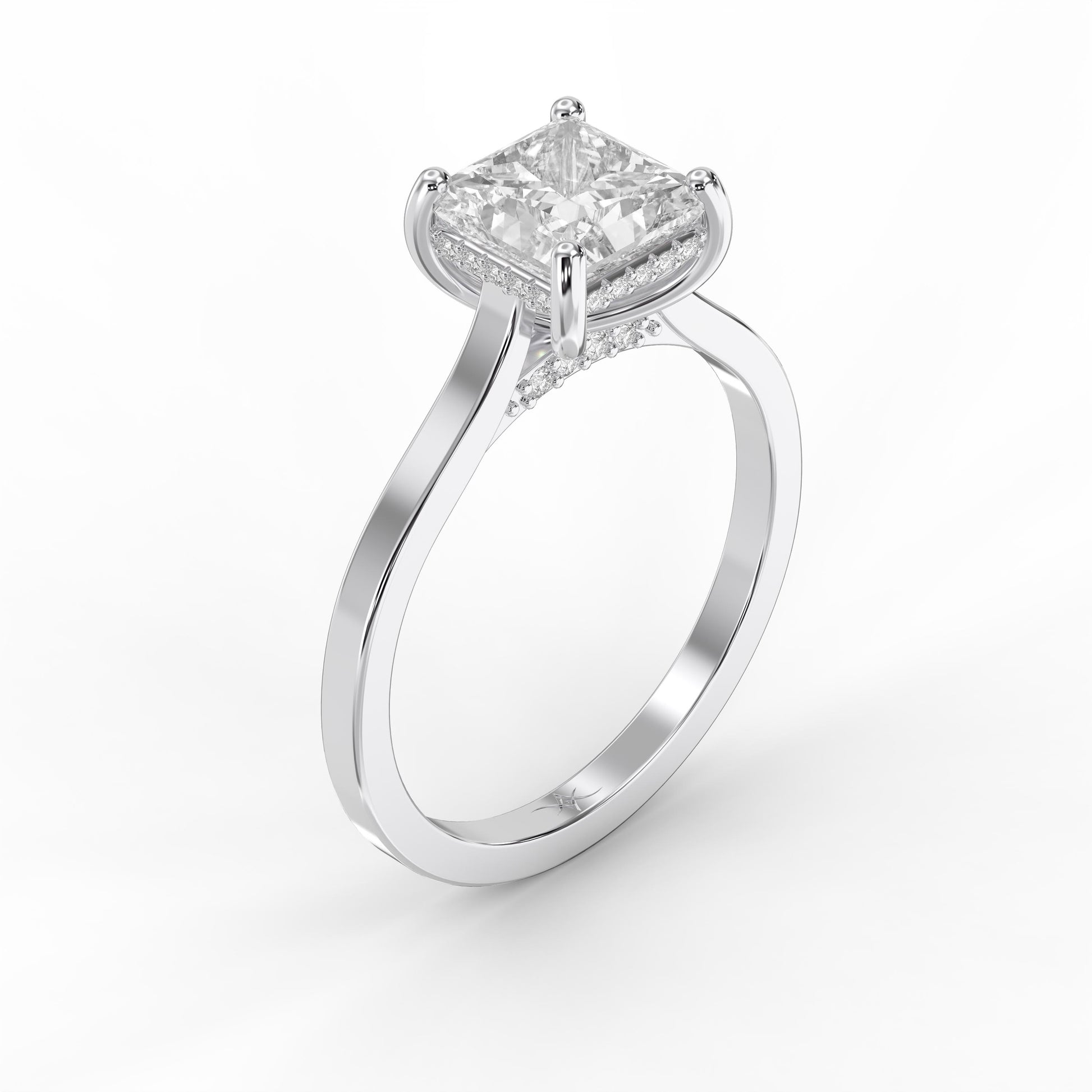 Introducing the Quiet Spark Princess Ring, a timeless engagement piece that balances understated elegance with brilliant sparkle.