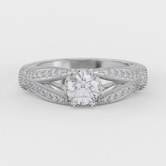 Discover timeless elegance with this Round Diamond Valencia Design Vintage Ring, a masterpiece that seamlessly blends classic sophistication with enduring beauty.