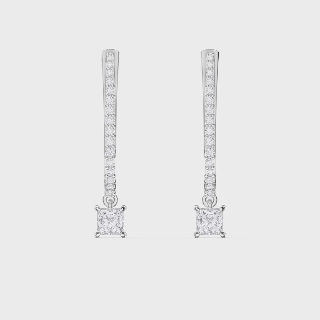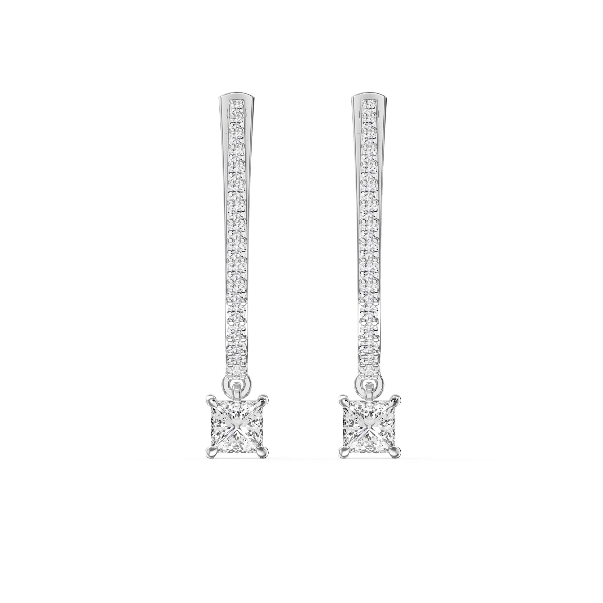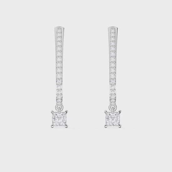 Add a touch of refined glamour to your collection with the Hoops Drop Earrings with Round & Princess Cut Diamonds. These elegant earrings feature a sleek pavé-set hoop design adorned with sparkling round brilliant diamonds, gracefully leading to a princess-cut diamond drop that captures light with every movement.