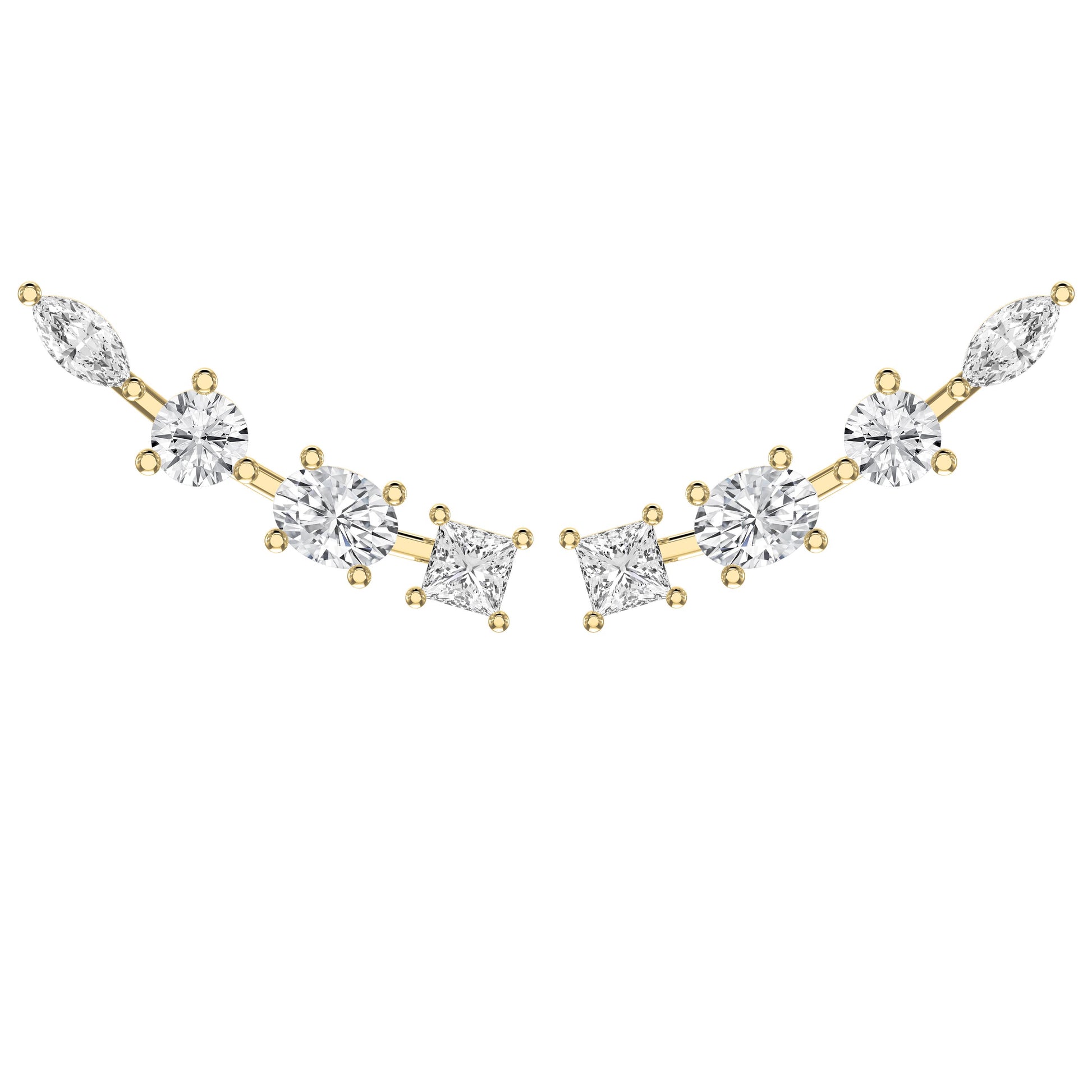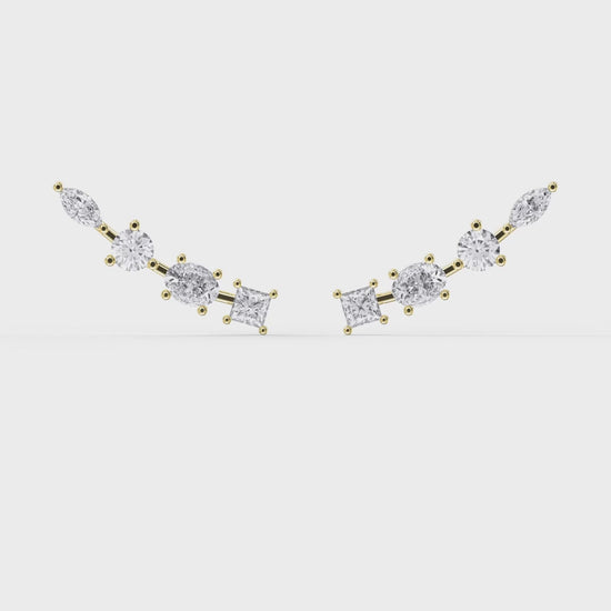 Expertly handcrafted in 14K Yellow ,Rose , White gold this design features a breathtaking array oflab-grown diamondsin mixed cuts - Includingmarquise , Oval , round, and princess shapes. This unique combination gives the earrings a playful yet luxurious aesthetic, capturing the magic of movement and brilliance with every turn of your head.