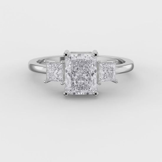 The Eternal Trinity Radiant showcases three brilliantly cut diamonds in harmonious alignment, symbolizing enduring love and commitment.