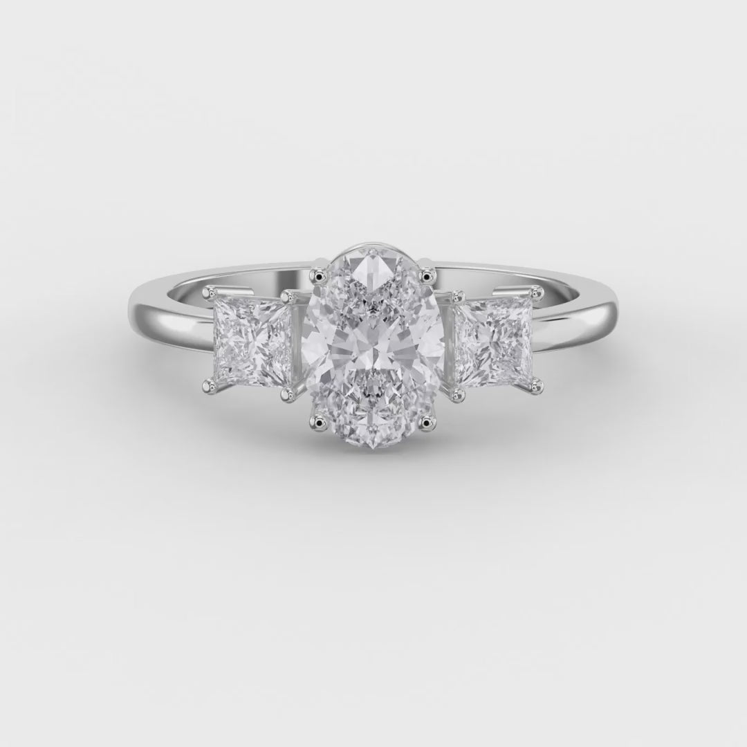The Sovereign Oval Trinity represents refined elegance through its distinctive three-stone design, each gemstone carefully selected to complement the others.