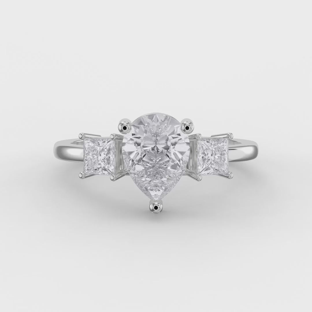 The True Promise Pear Trio showcases three exquisite pear-shaped stones in a harmonious design that celebrates meaningful moments.