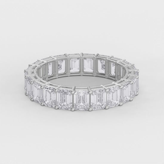 The emerald shape offers a distinctive geometric elegance, while the full eternity design symbolizes infinite commitment. Crafted with precision and timeless appeal, this ring transitions effortlessly from everyday wear to special occasions, making it a cherished heirloom piece for generations to come.