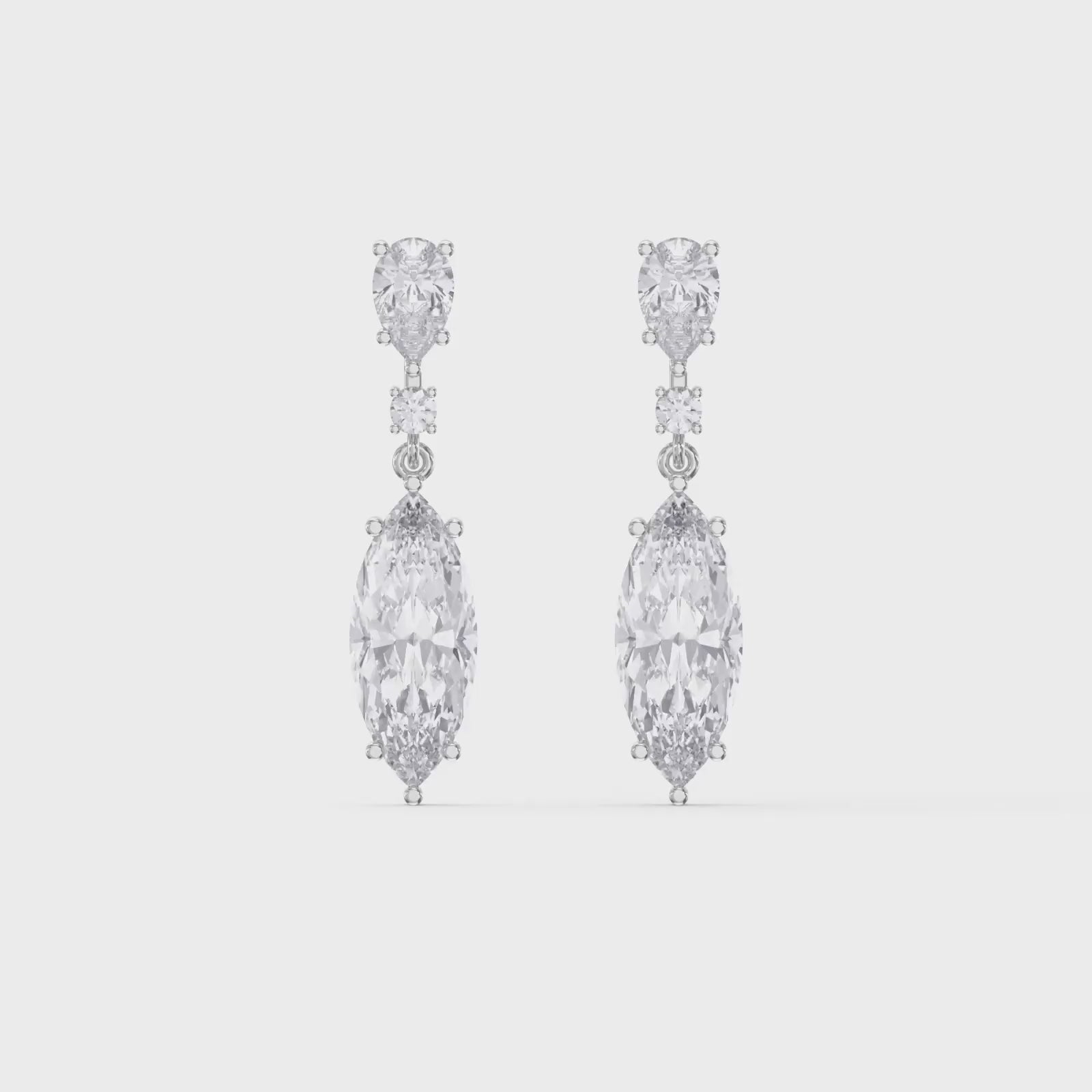 Our Drop & Dangle Earrings combine the graceful curves of round, pear, and marquise-cut lab-grown diamonds to create a look that’s effortlessly luxurious and full of movement. Each diamond cut plays its part — the round brings classic brilliance, the pear adds delicate elegance, and the marquise offers an elongated sparkle that draws the eye.