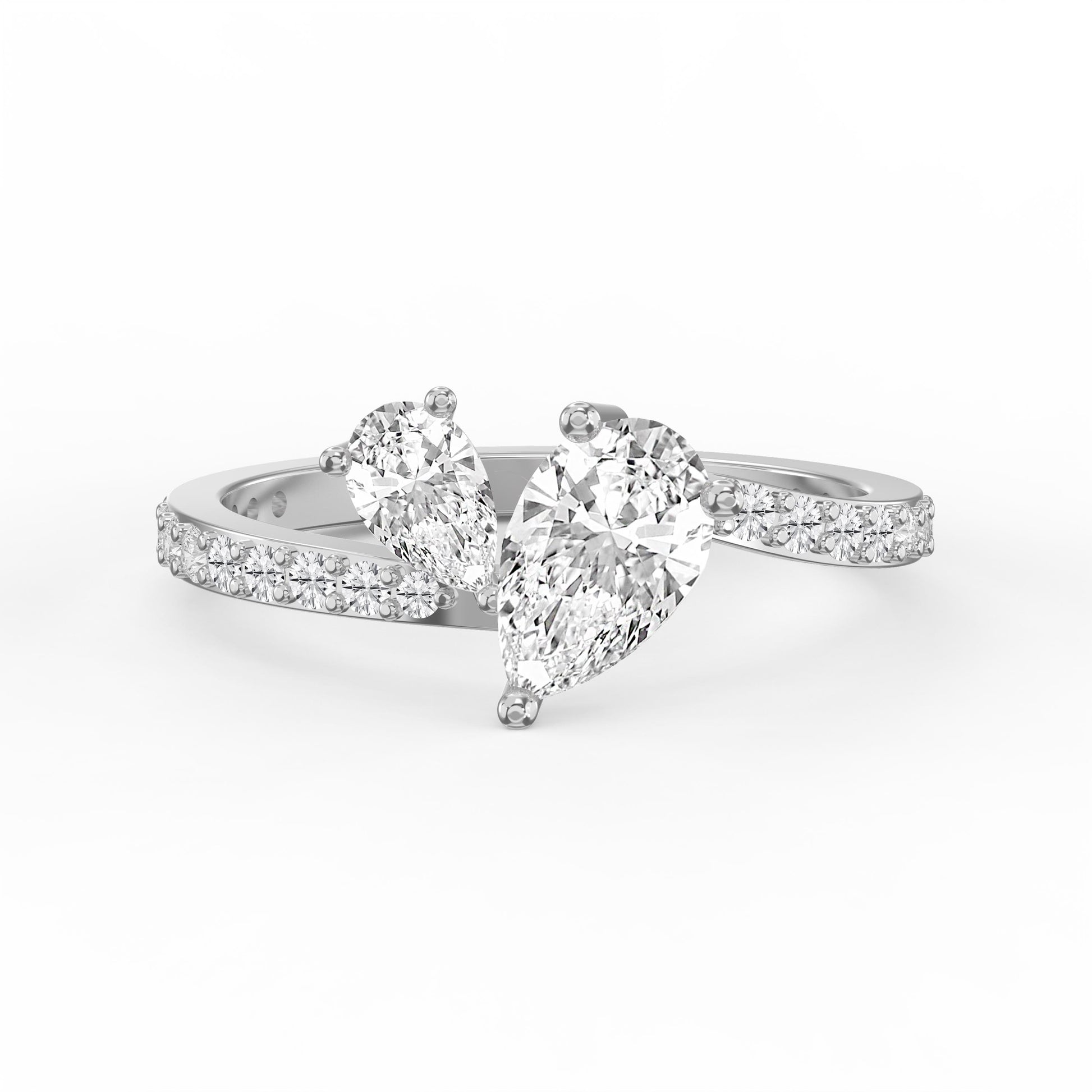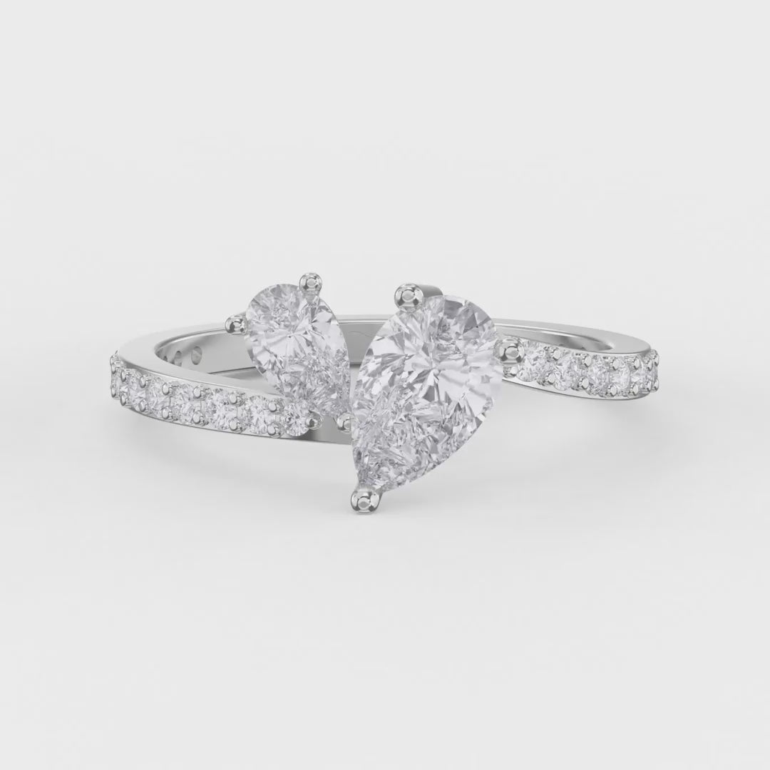 Two-Stone Pear Shaped Diamond Bypass Side Stone Engagement Ring