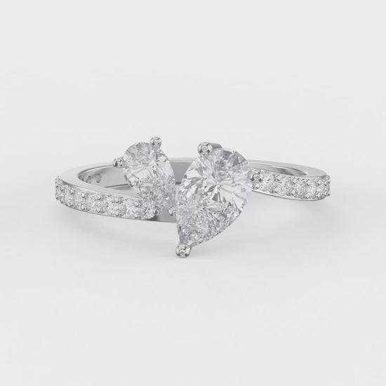 Celebrate your love with this sophisticated two-stone pear shaped diamond engagement ring, expertly crafted by Valam Design.